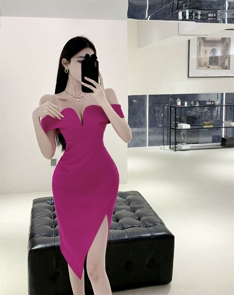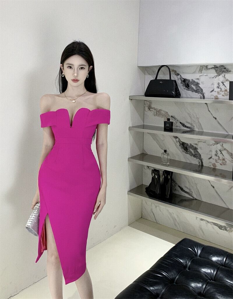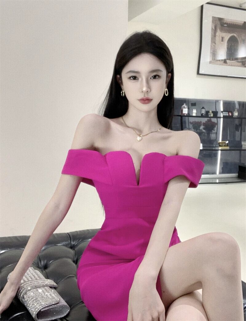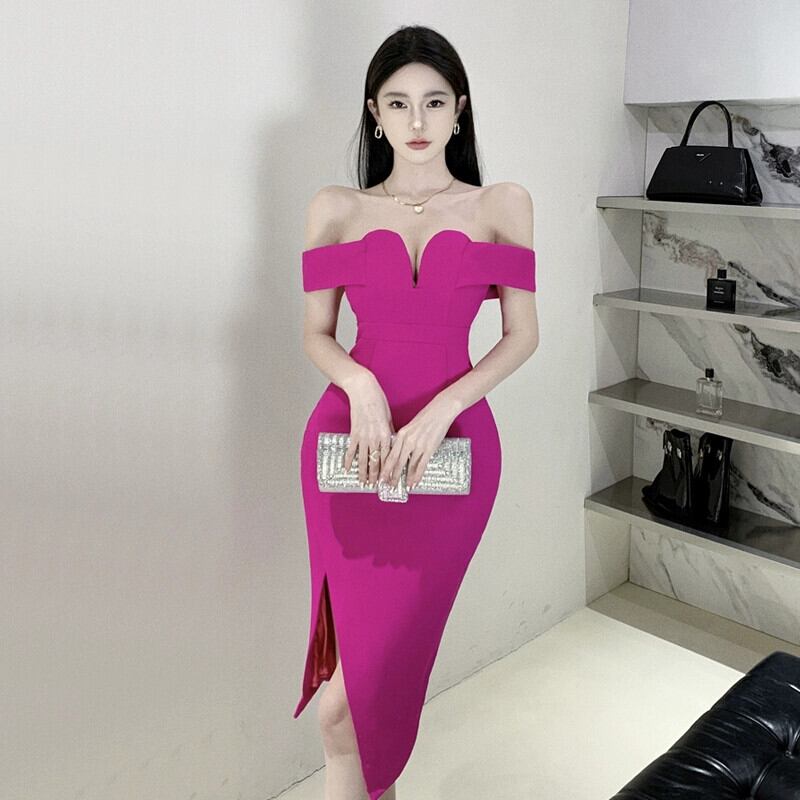 イブニングドレス、ハイエンド、ライトラグジュアリー、ニッチ、ハイエンド、フェミニン、セクシーなワンショルダーミッドレングスオフショルダードレス yeyij70284383545