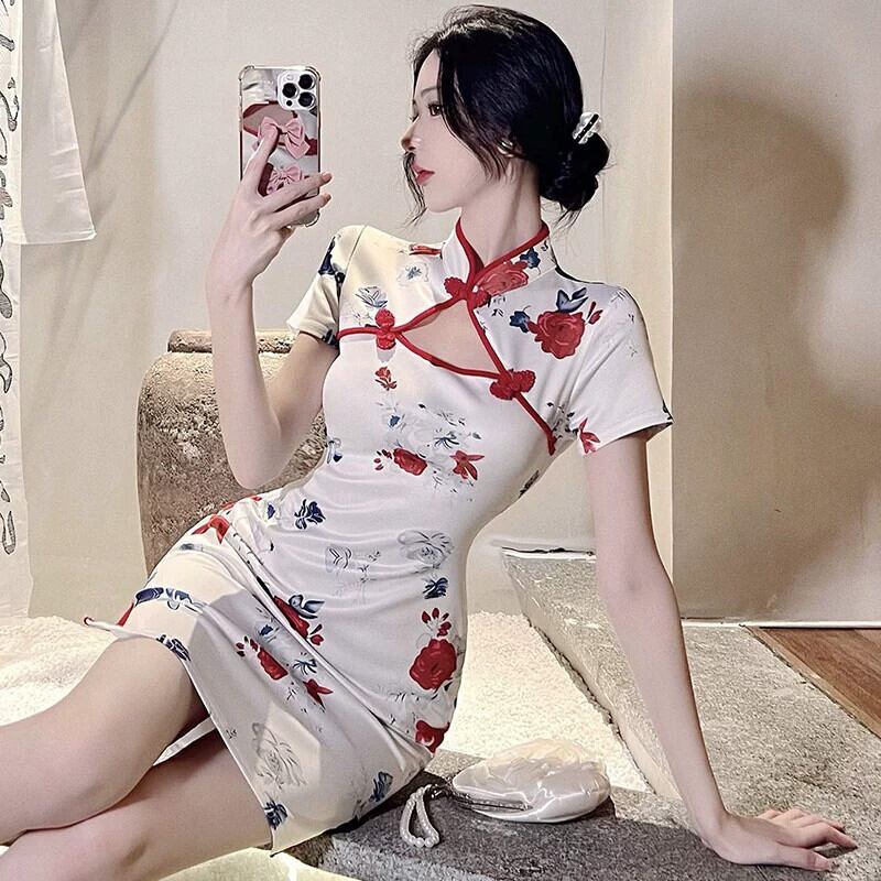 中国風のチャイナドレス 2023 新しい生放送アンカー服若いセクシーな中空ヒップカバードレス yeyij18659991899