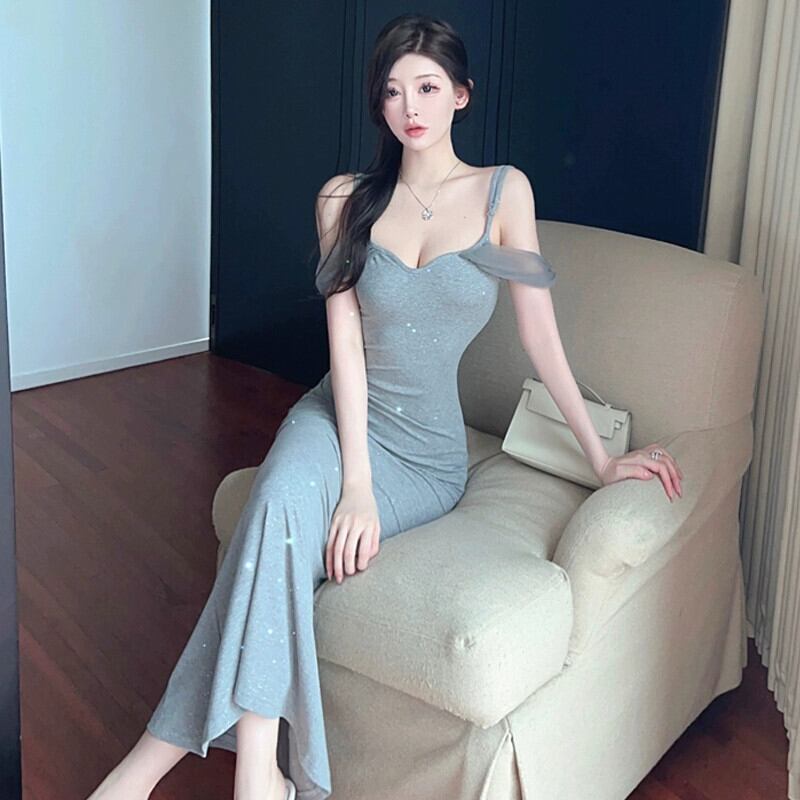 イブニングドレスの女性 2023 新スタイルのハイエンド宴会気質ロングスカートメッシュスプライシングスパークリングセクシーなドレス yeyij41333319773