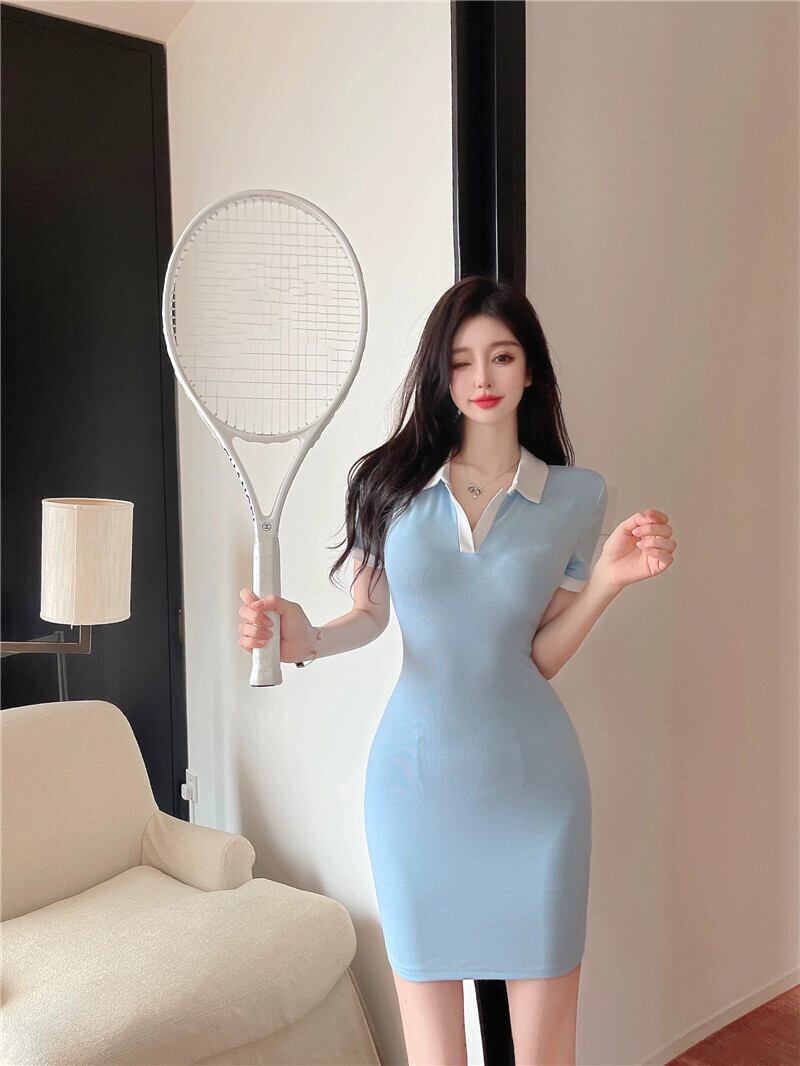 2023 新しい女性の夏の純粋な欲望ネクタイセクシーな V ネックスプライシングポロカラー半袖お尻カバードレス サマー 夏物 Vネック ピュア yeyij15822224304