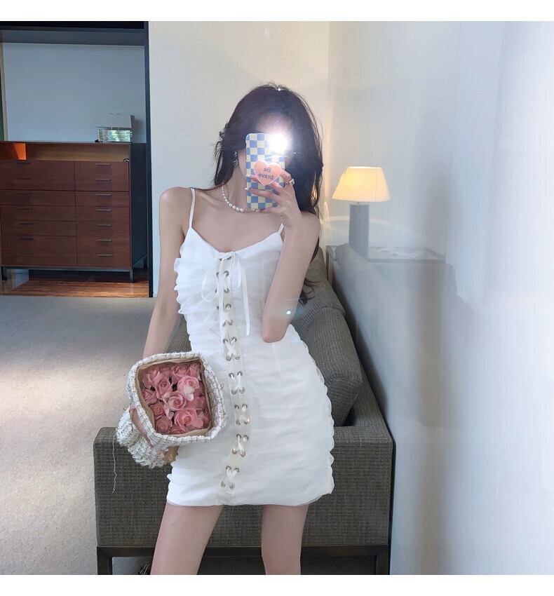 フレンチ ロマンチック サスペンダー ドレス レディース 夏 - スーパー フェアリー プリーツ スリムフィット ストラップ メッシュ ヒップ カバー ドレス サマー 夏物 yeyij70691267525