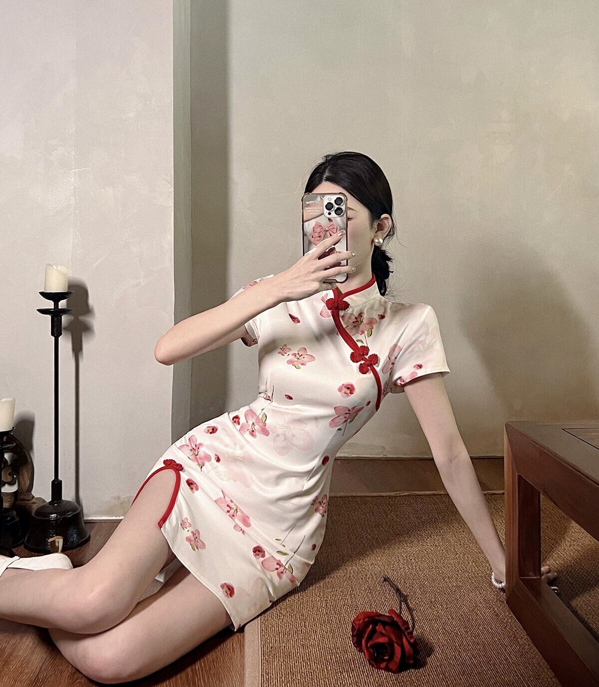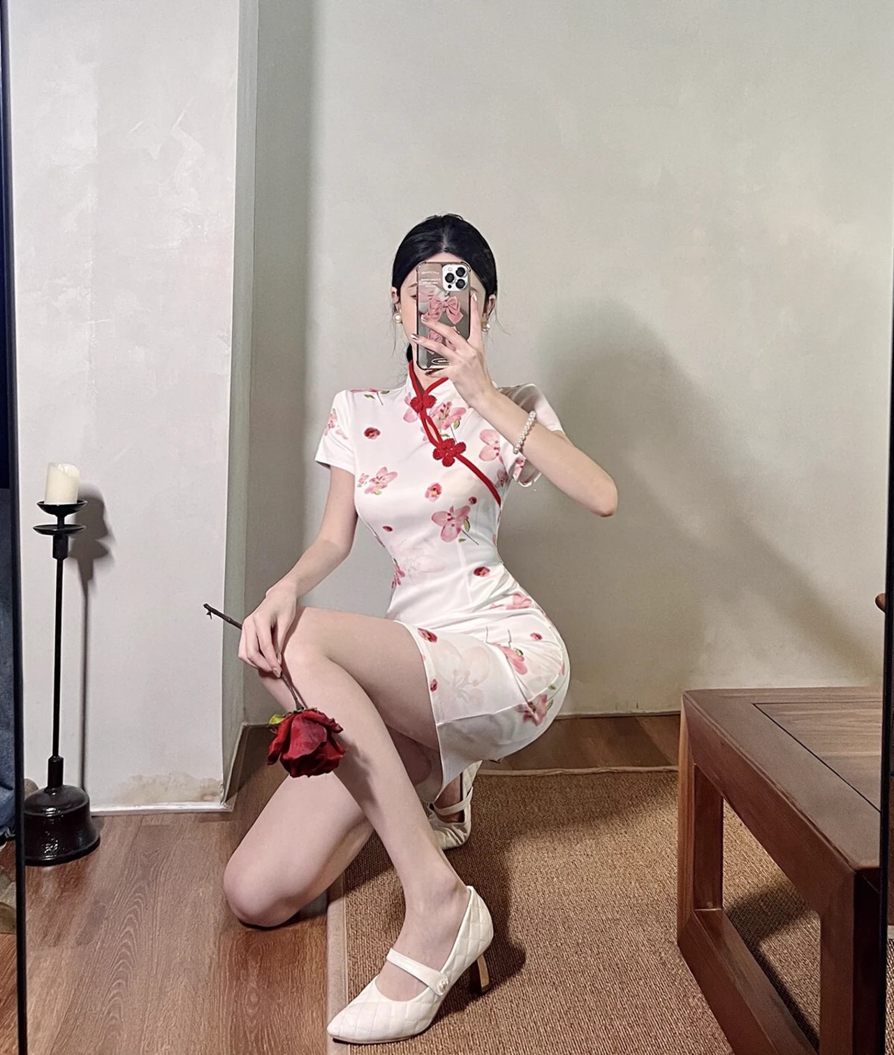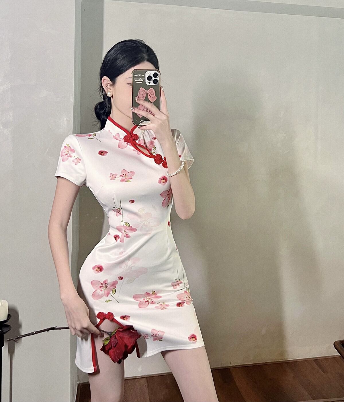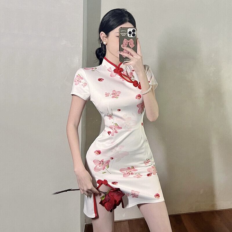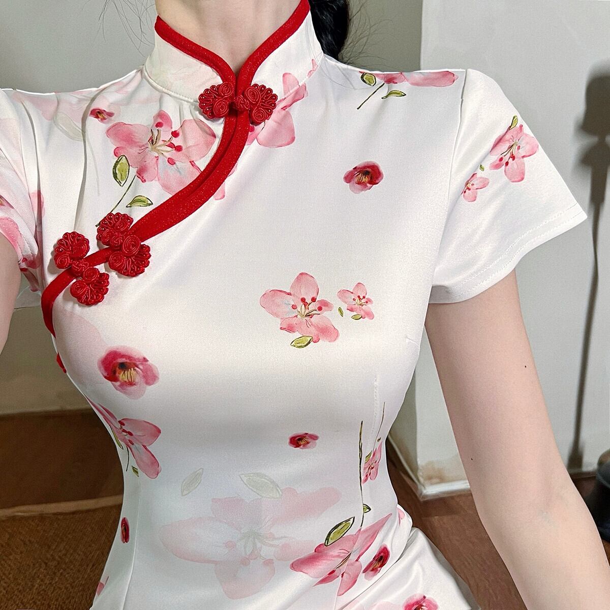 生放送服女性アンカー pogenic 若いセクシーなレトロな花柄改良されたチャイナ ドレス yeyij89574771803