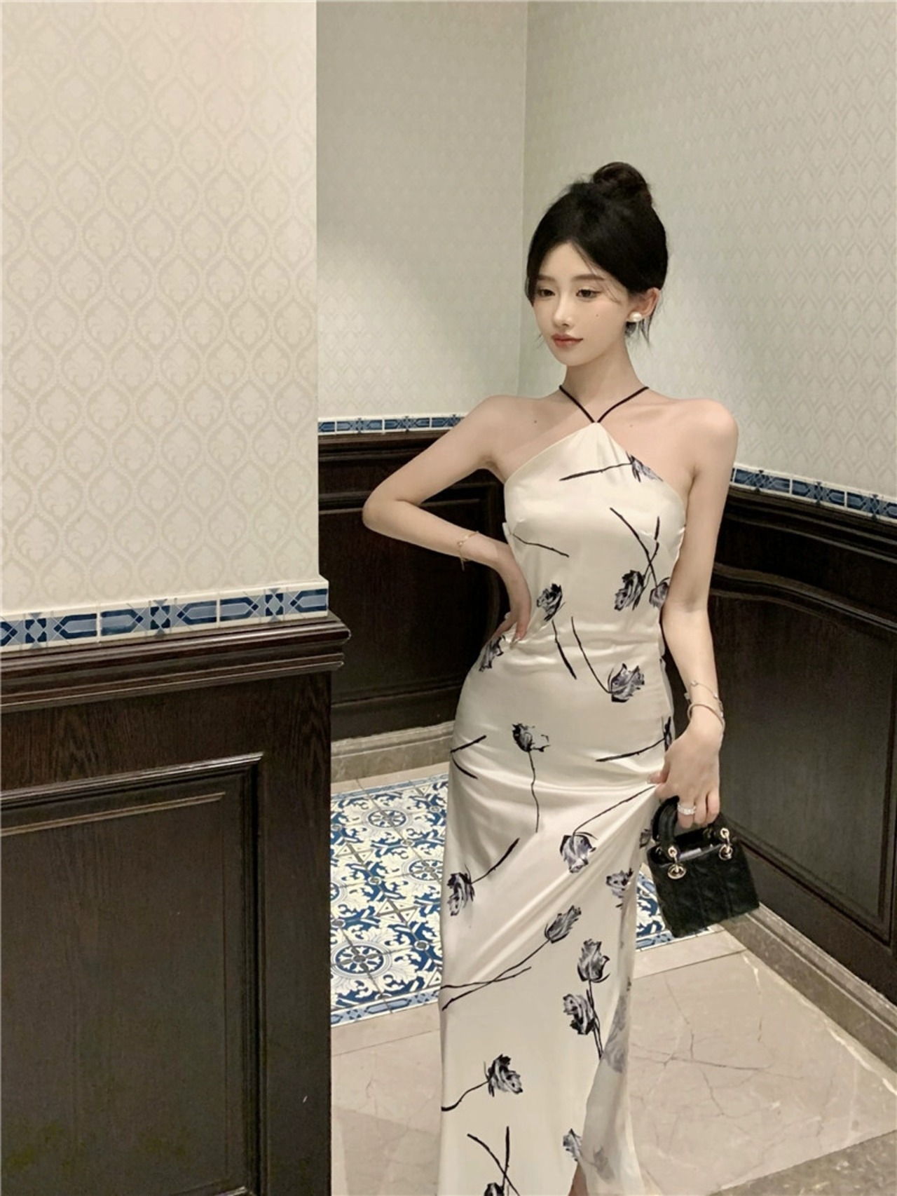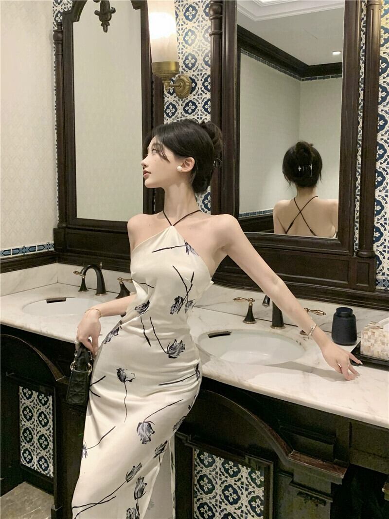 イブニングドレスロングスカート女性、高級パーティーホスト、宴会気質、セクシーな背中の開いたロングホルタードレス yeyij50534214183