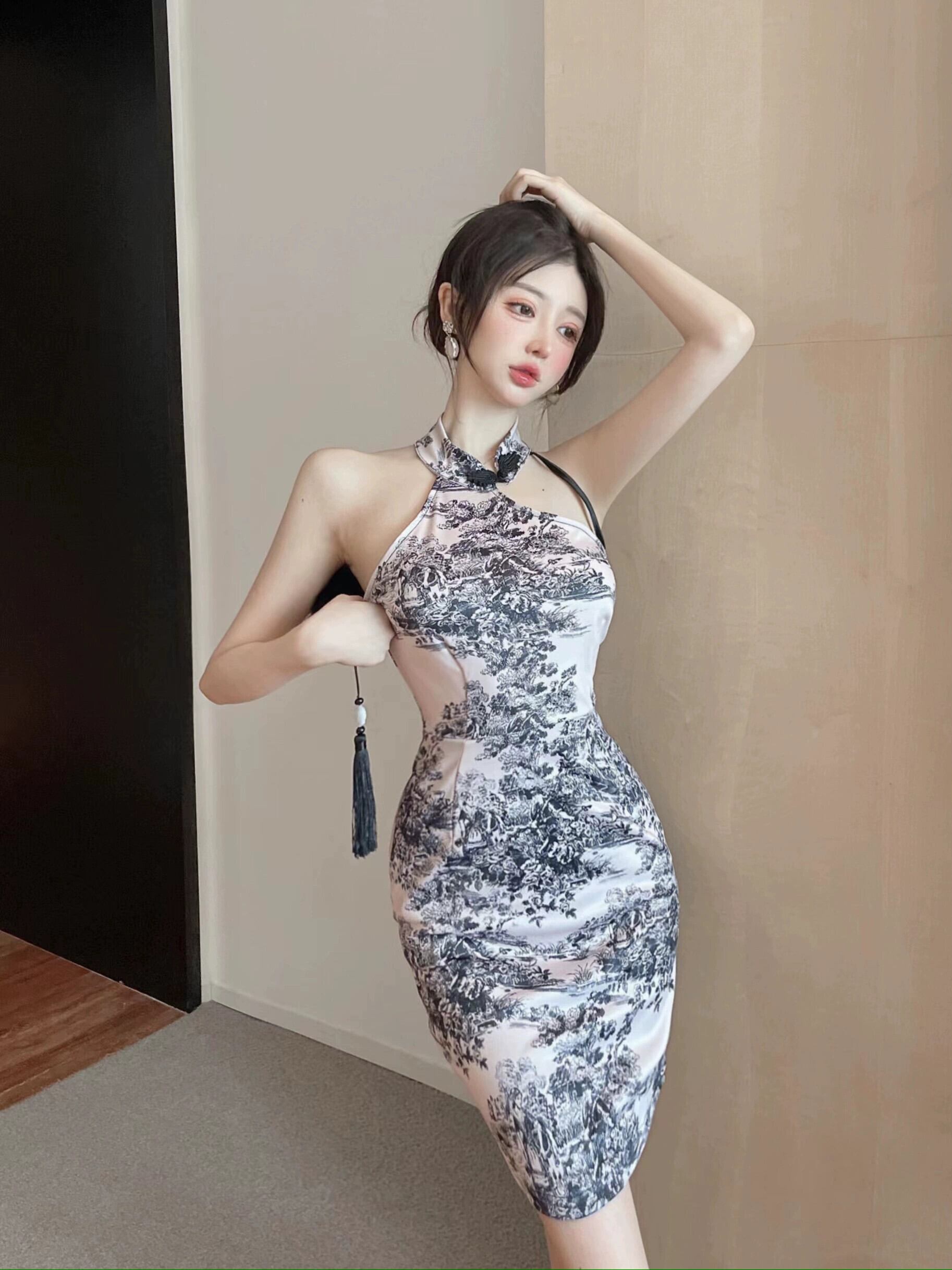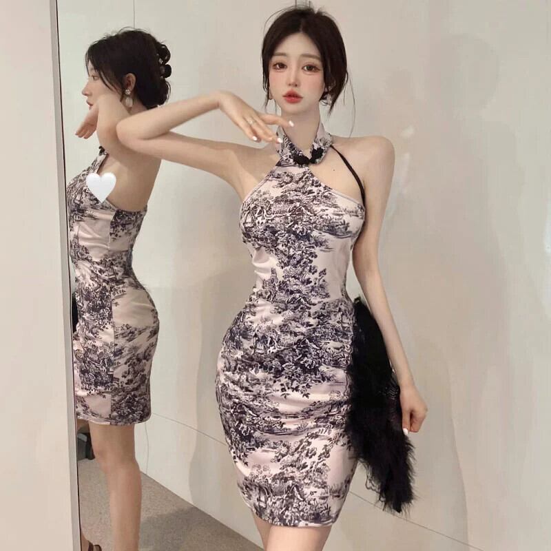 生放送服アンカー服新しい中国風の若いセクシーなホルターネックオフショルダー改良されたチャイナドレス yeyij5551670577