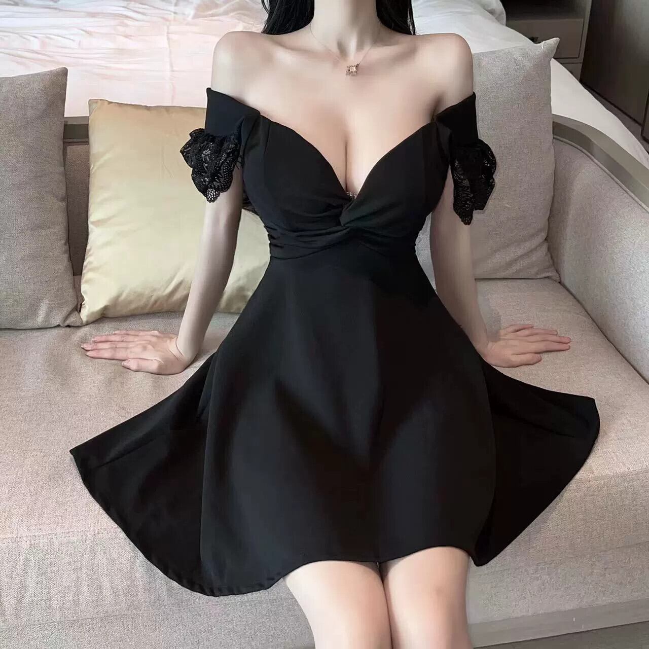 ナイトクラブの女性のセクシーな作業服ローカットディープ V ネックレースパッチワークウエスト痩身ドレス Vネック yeyij64286557516