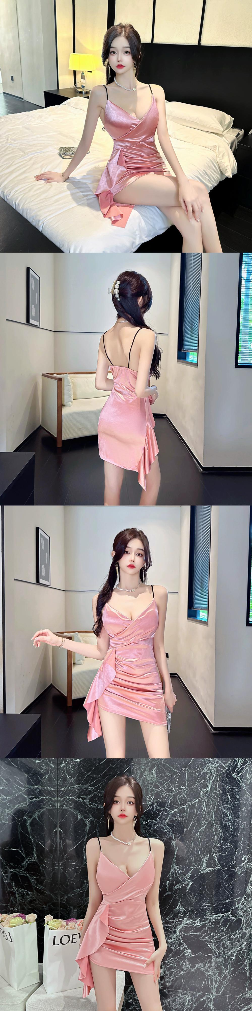 ナイトクラブの女性のナイトクラブ作業服ハイエンドサテンスリムセクシーなローカット V ネックサスペンダードレス Vネック yeyij30461959469