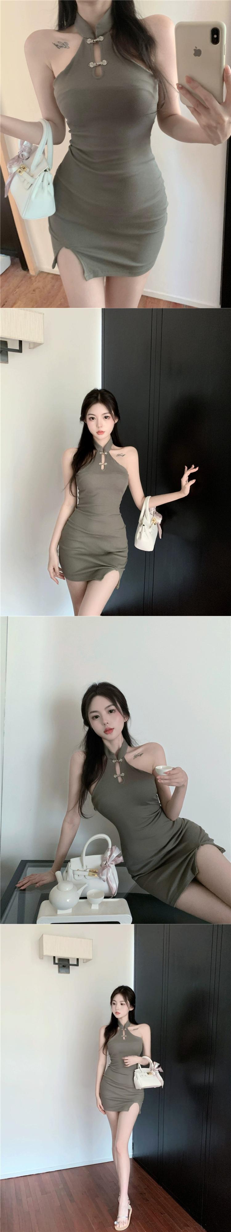 中国風改良チャイナドレス若いアンカー服セクシーなオフショルダータイトヒップハグホルターネックドレス yeyij11549614162