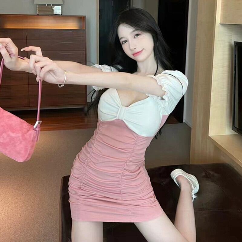 セクシーなナイトクラブ作業服店婦人服セクシーなローカットディープ V ネックアンカーフレンチパフスリーブフィッシュテールドレス Vネック yeyij41479440671
