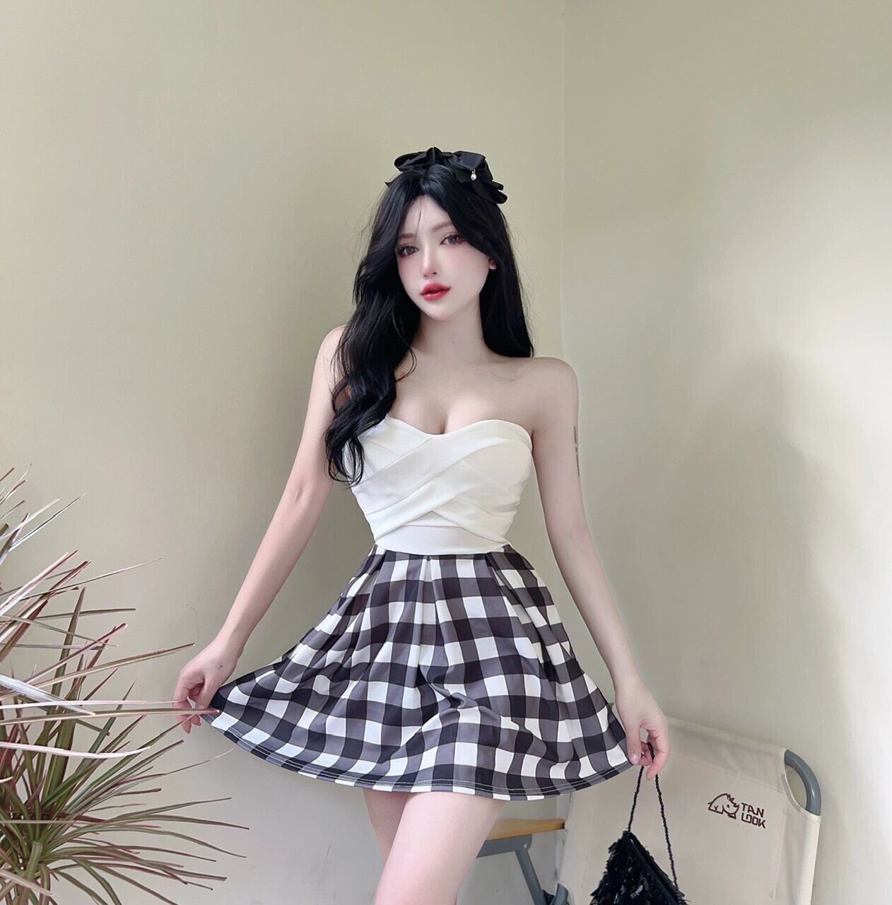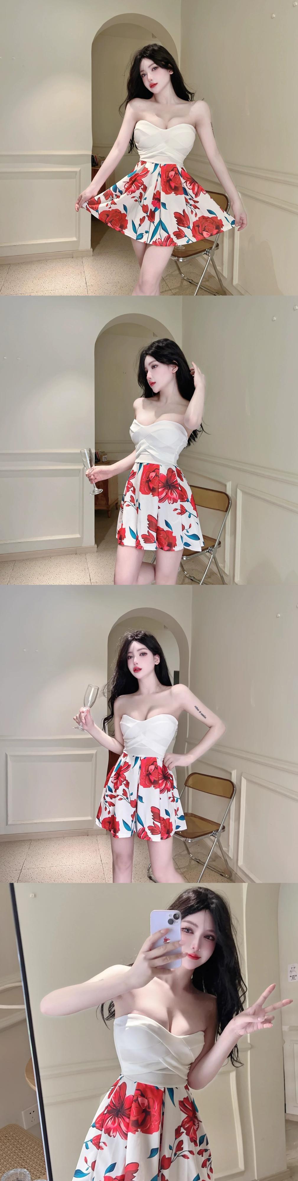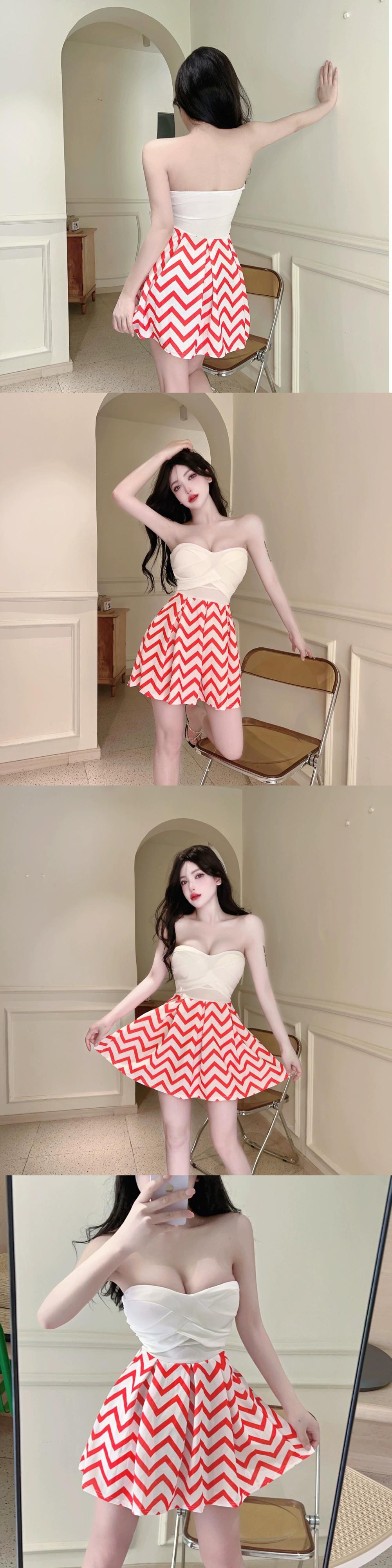 ナイトクラブの作業服、ペディキュアの女性技術者の服、セクシーなナイトクラブの女性のチェック柄スプライシングチューブトップドレス yeyij35203583718