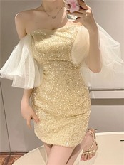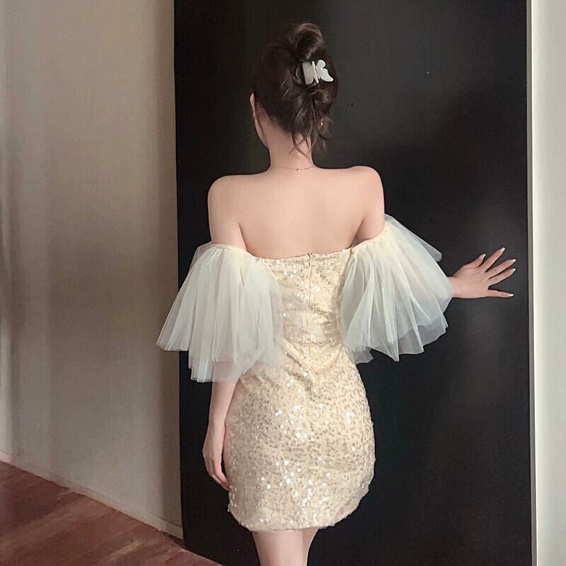 セクシーなキラキラチューブトップドレスフレンチスーパーフェアリーイブニングドレススカートライト高級ニッチハイエンドパーティーパーティー yeyij28489123184