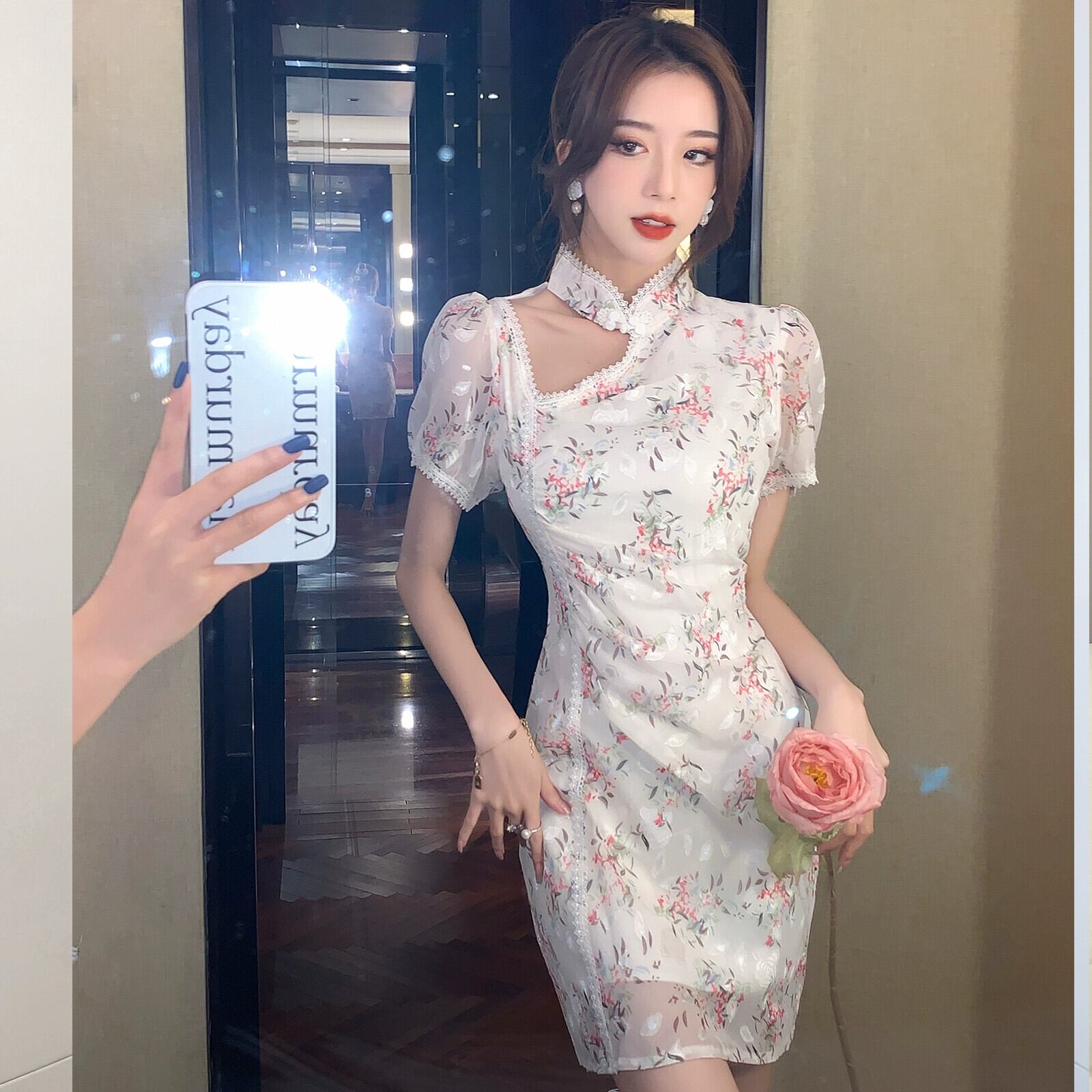 生放送服女性アンカー pogenic ハイエンド若いセクシーな中空ワンショルダー オフショルダー ホルターネック チャイナ ドレス yeyij77977665336