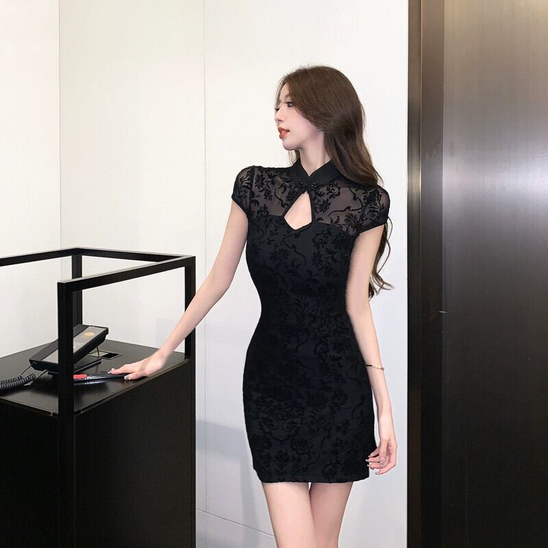 生放送服女性アンカー服pogenic若いセクシーな中空メッシュ改良版チャイナドレス yeyij76567887873
