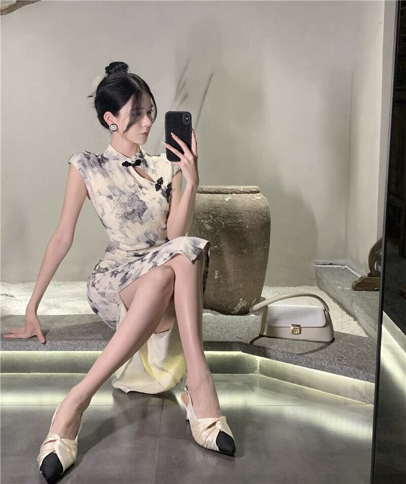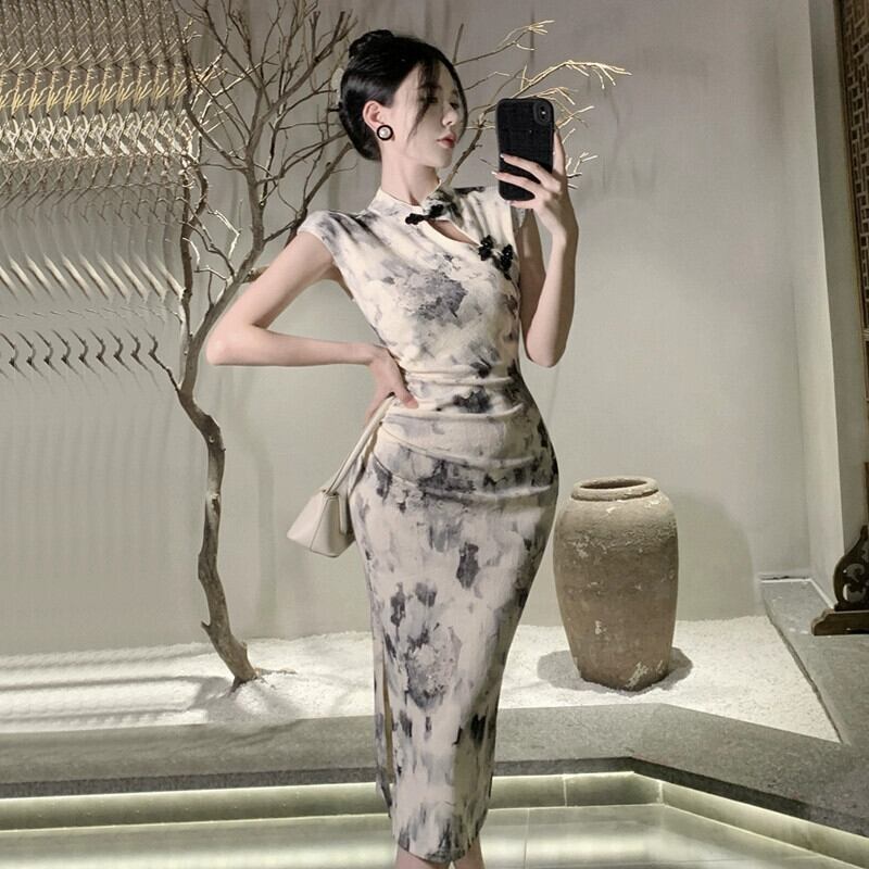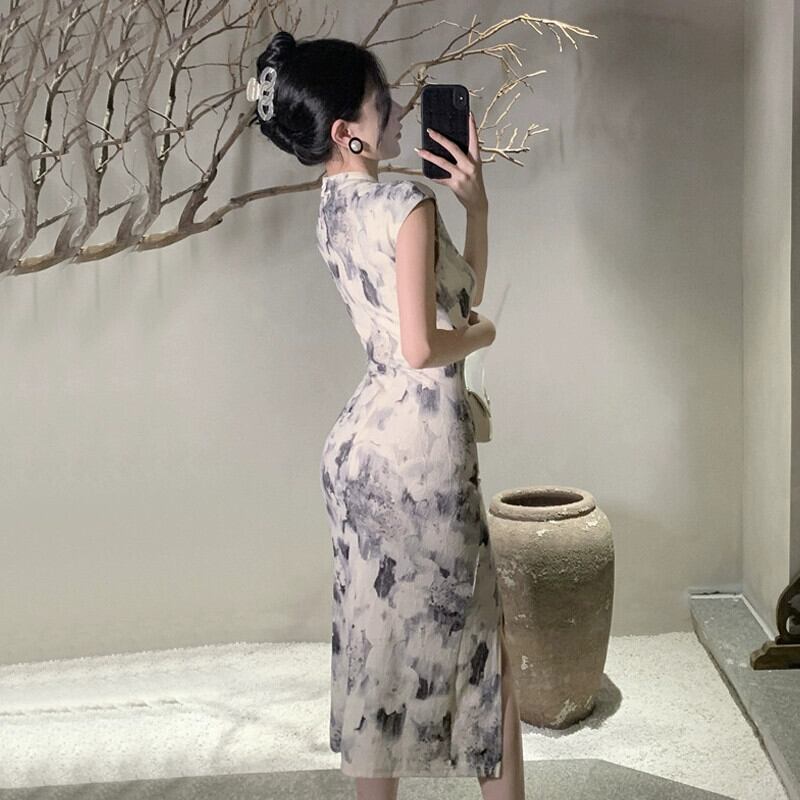 中国風のチャイナドレス 2023 新しいハイエンド、軽くて成熟した Yujie レトロプリントミッドレングスの改良されたチャイナドレス yeyij56607916349