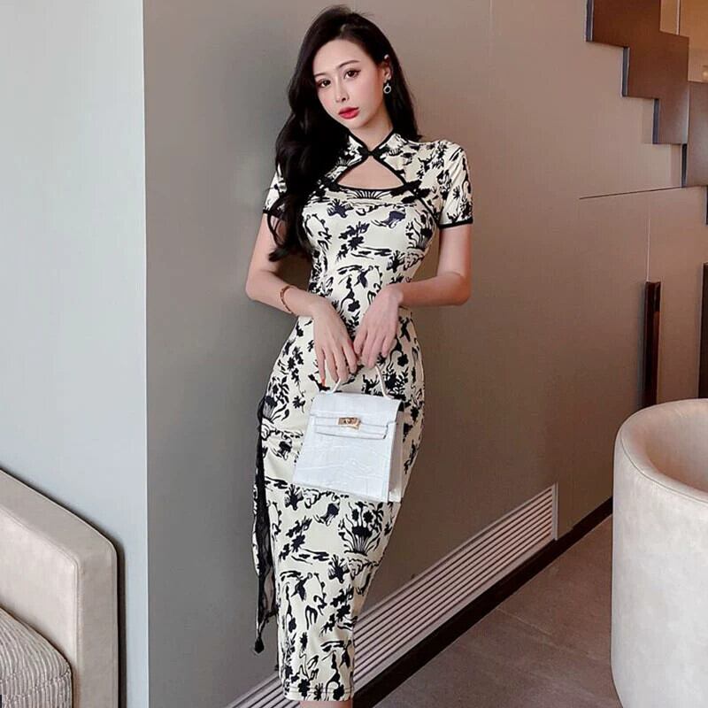 チャイナドレスハイエンド改良された若いスタイル2022新しいフレンチスタイルのレトロなセクシーなスリットミッドレングスドレス yeyij32018033382