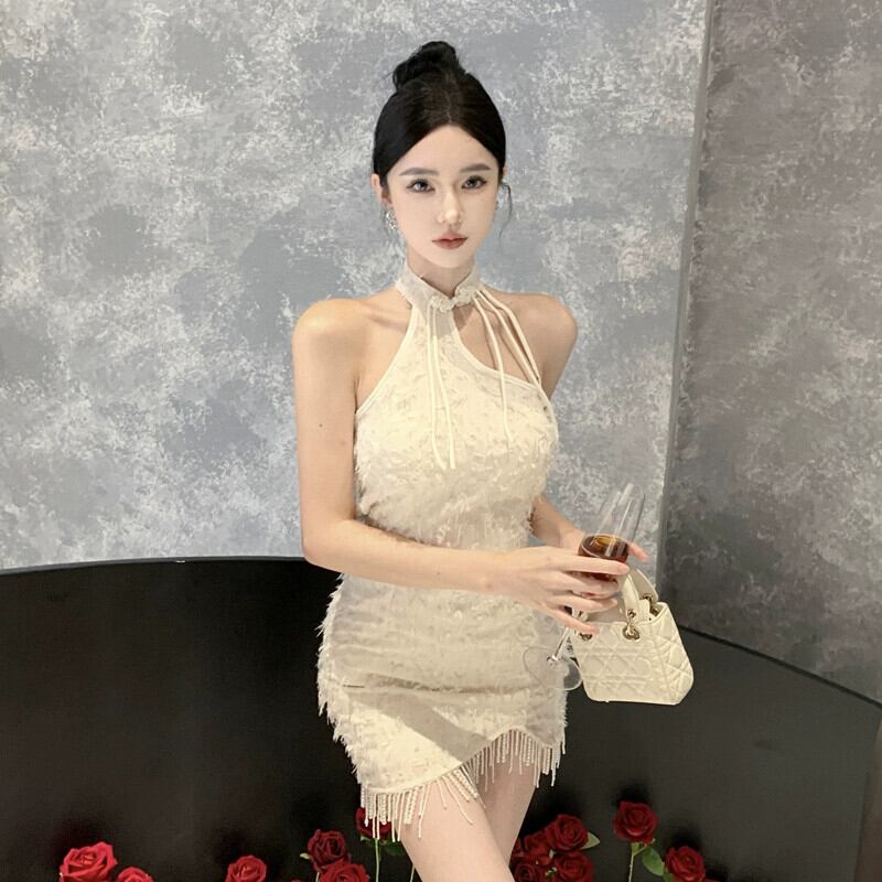 誕生日パーティードレスの女性、ハイエンド、スーパーフェアリー、若い、セクシーなオフショルダーホルターネックチャイナドレス yeyij8473996102