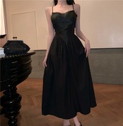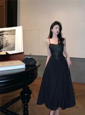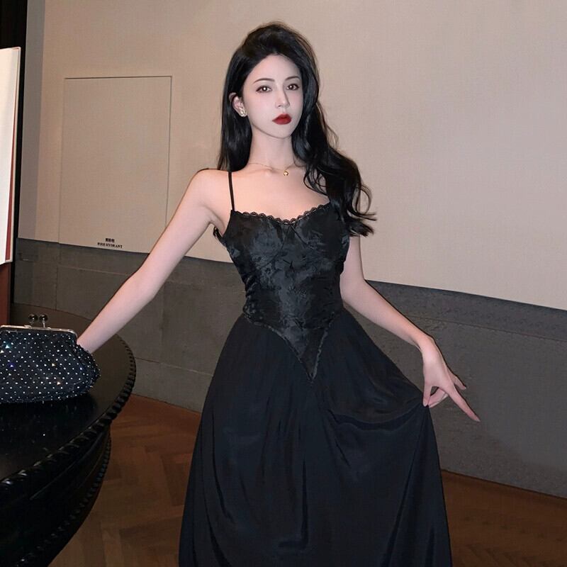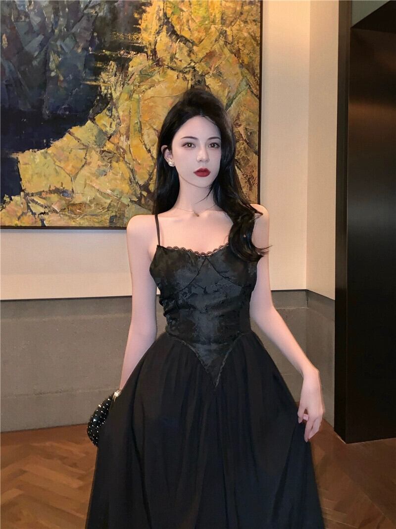 ヘップバーン スタイルのイブニング ドレス、フェミニン、ライト ラグジュアリー、ニッチ ハイエンド トースト ドレス、フレンチ ブラック セクシー サスペンダー ドレス yeyij29768726881