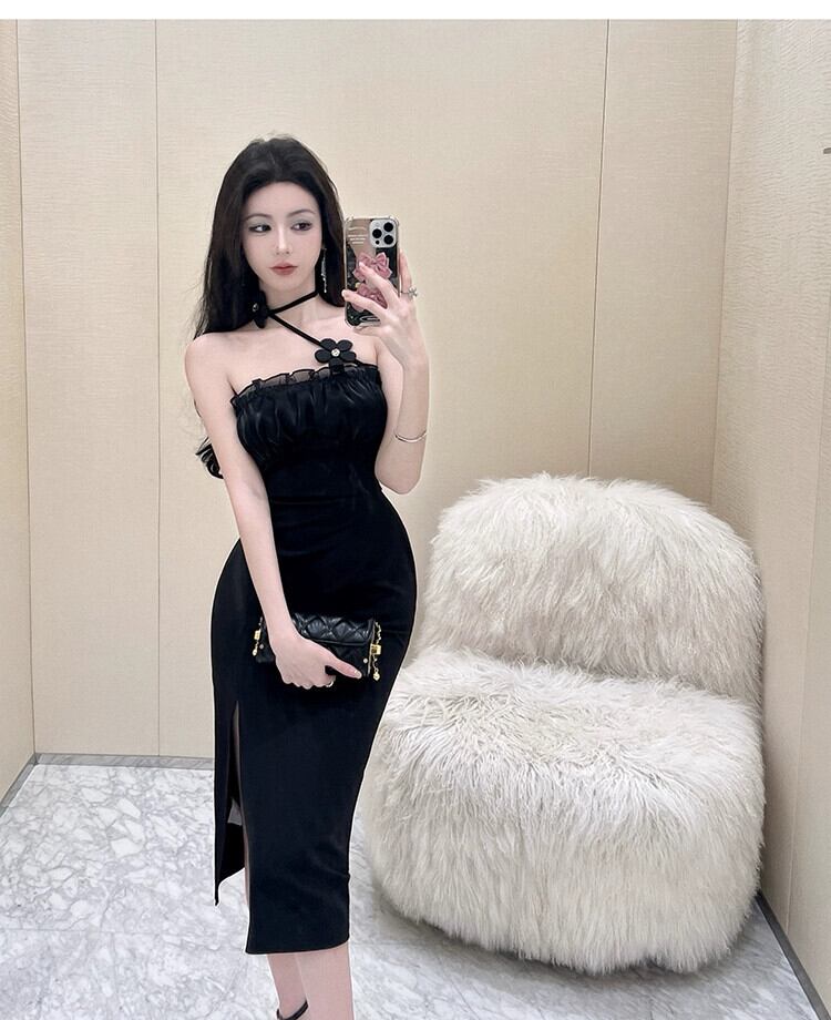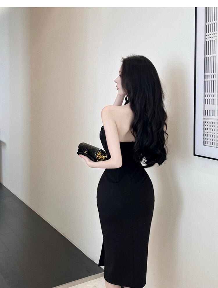 ヘップバーンスタイルのイブニングドレス、ハイエンドのライトラグジュアリー、ニッチ、ハイエンド、リトルブラックドレス、気質、セクシーなチューブトップ、ホルターネックドレス yeyij64637476053