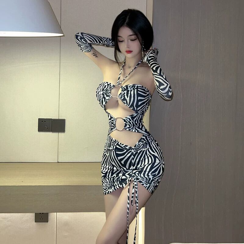ナイトクラブセクシーな女性のナイトクラブ作業服中空ローカットディープ V ネック長袖オフショルダーホルターネックドレス ロング Vネック yeyij16107077552