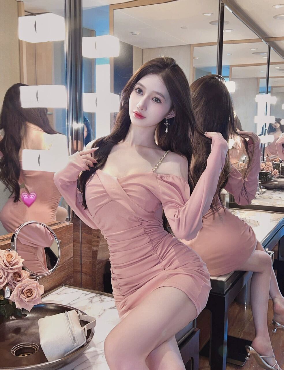 生放送服女性アンカー pogenic ナイトクラブ純粋な欲望セクシーなワンショルダー長袖オフショルダー チェーン サスペンダー ドレス ロング ピュア yeyij56587658340