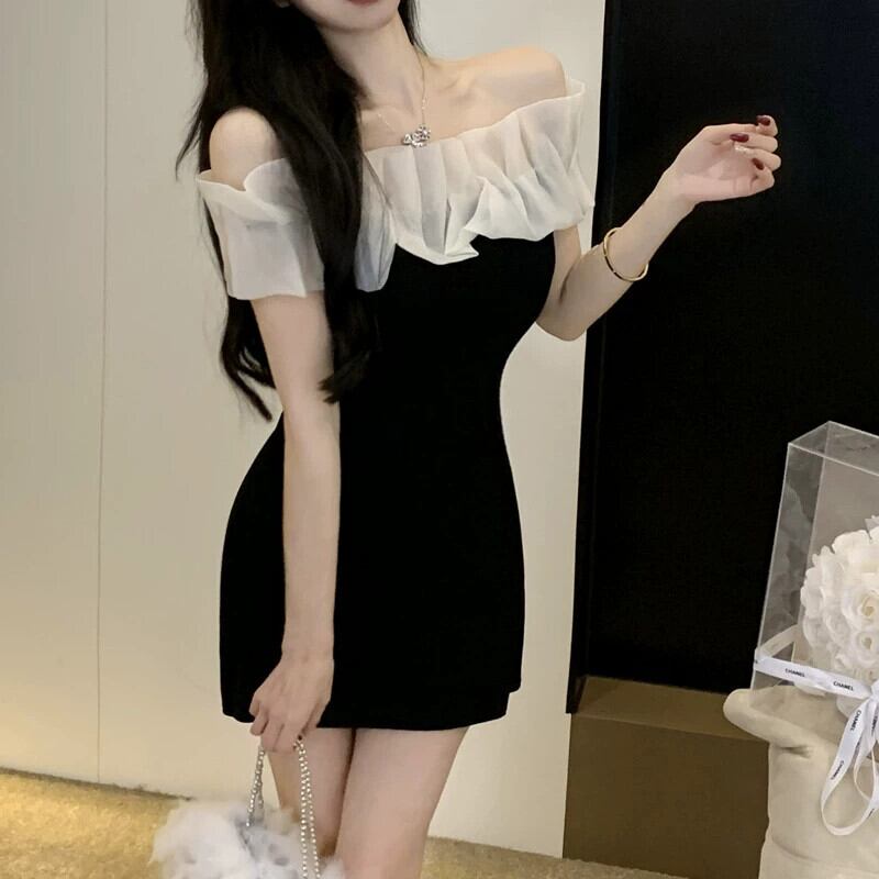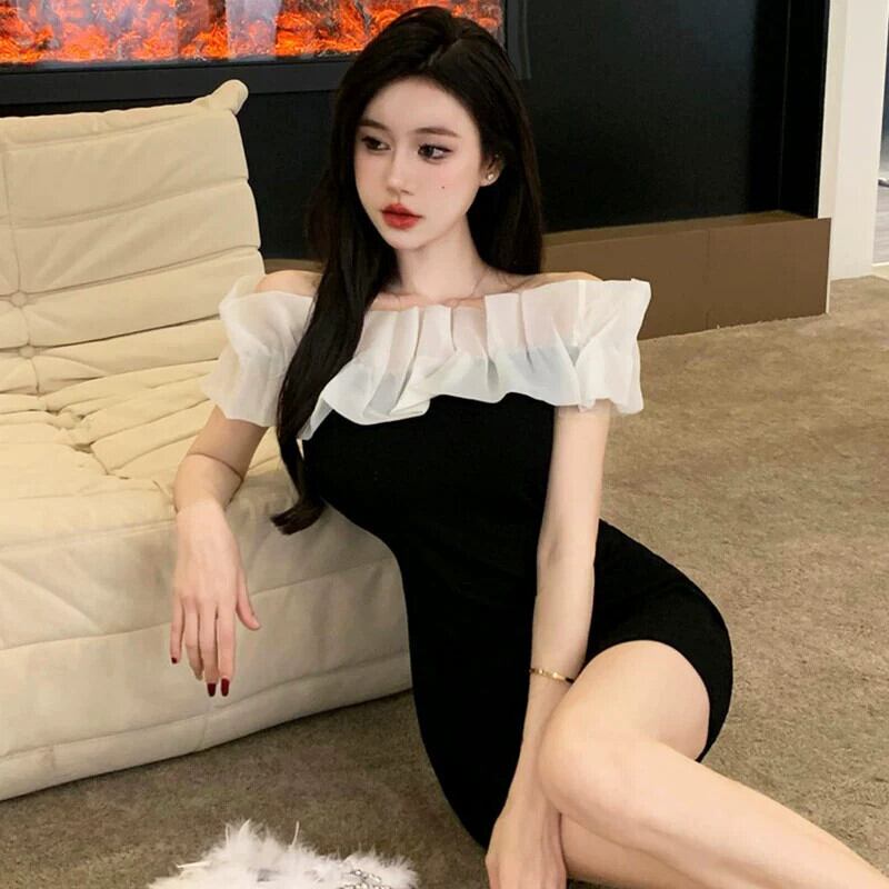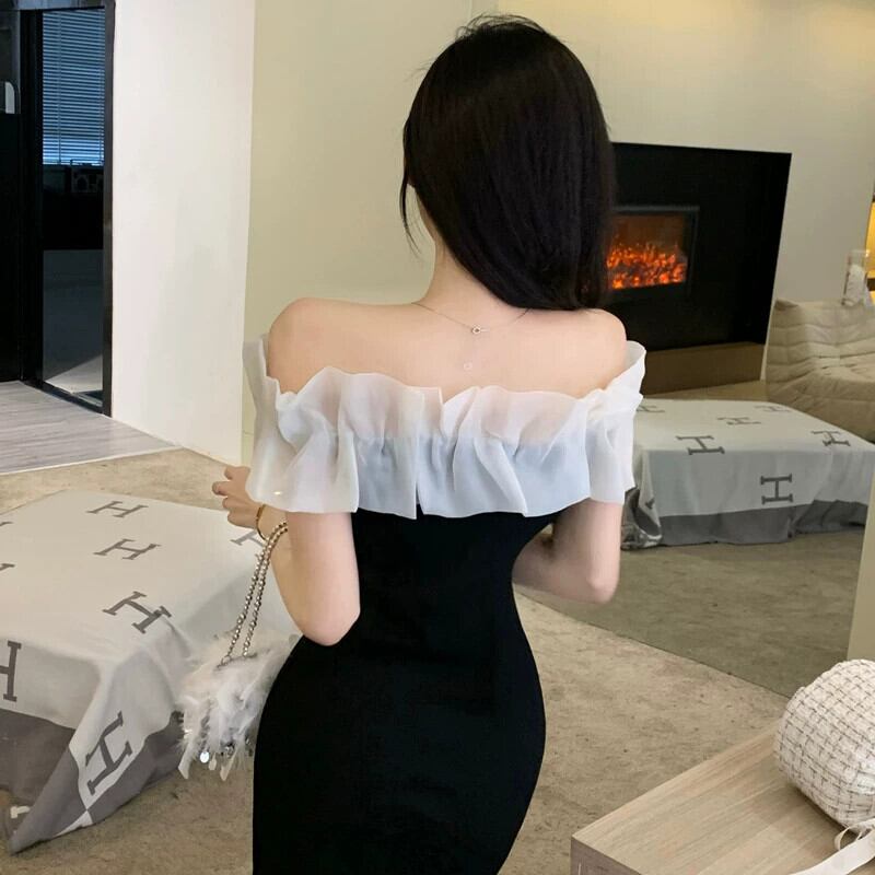 生放送服女性アンカー pogenic ハイエンド純粋な欲望スタイルフレンチフリルワンショルダーセクシーなオフショルダードレス ピュア yeyij23956289048