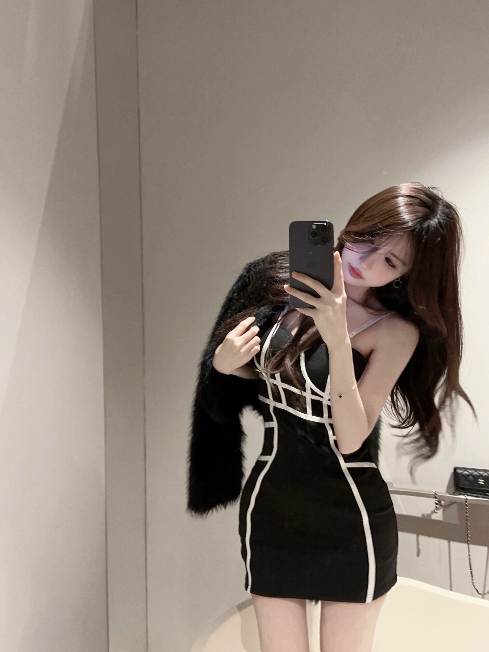 セクシーなドレスの女性のナイトクラブ純粋な欲望ネクタイ V ネック黒と白のストライプ中空メッシュスプライシングヒップカバーサスペンダースカート ホワイト ブラック Vネック ピュア yeyij81524023108