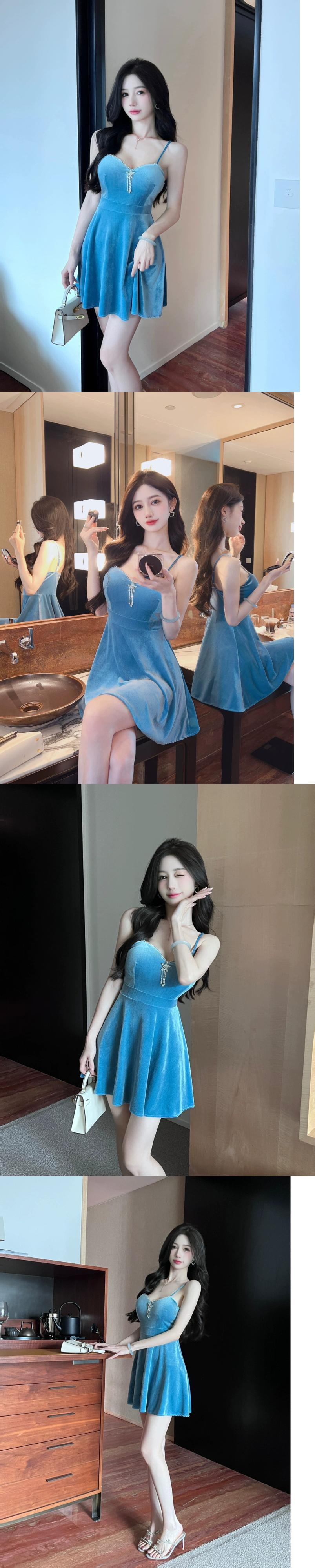 ナイトクラブの女性の秋と冬のナイトクラブの作業服ウエスト痩身お腹カバーゴールドベルベットのセクシーなサスペンダードレス オータム 秋物 ウィンター 冬物 yeyij4199496196