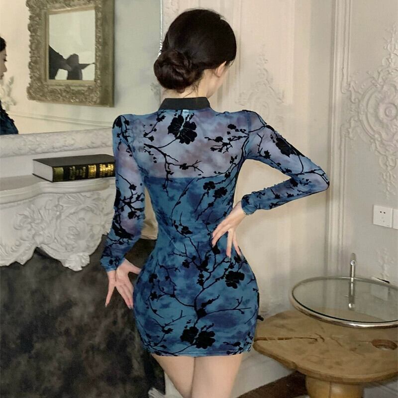 生放送服女性アンカー pogenic ハイエンド若いセクシーなメッシュショート修正チャイナドレス yeyij67569217539