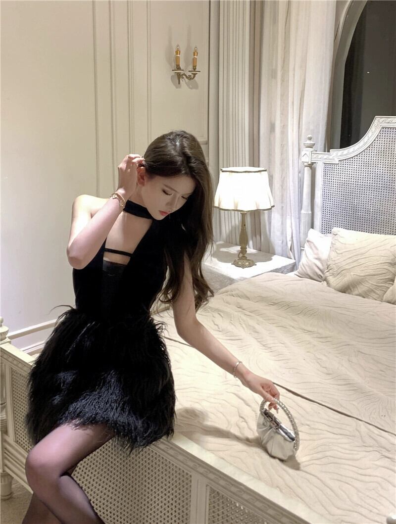 パーティードレス秋冬レディースフレンチヘップバーンスタイルブラックセクシーなVネックブラックテルホルターネックサスペンダードレス オータム 秋物 ウィンター 冬物 yeyij93463667799