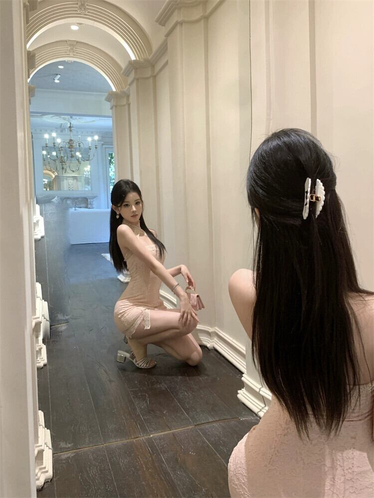 生放送女性アンカーの pogenic ハイエンド年次総会ドレスショートセクシーなレースのホルターネックチューブトップドレス yeyij64126015112