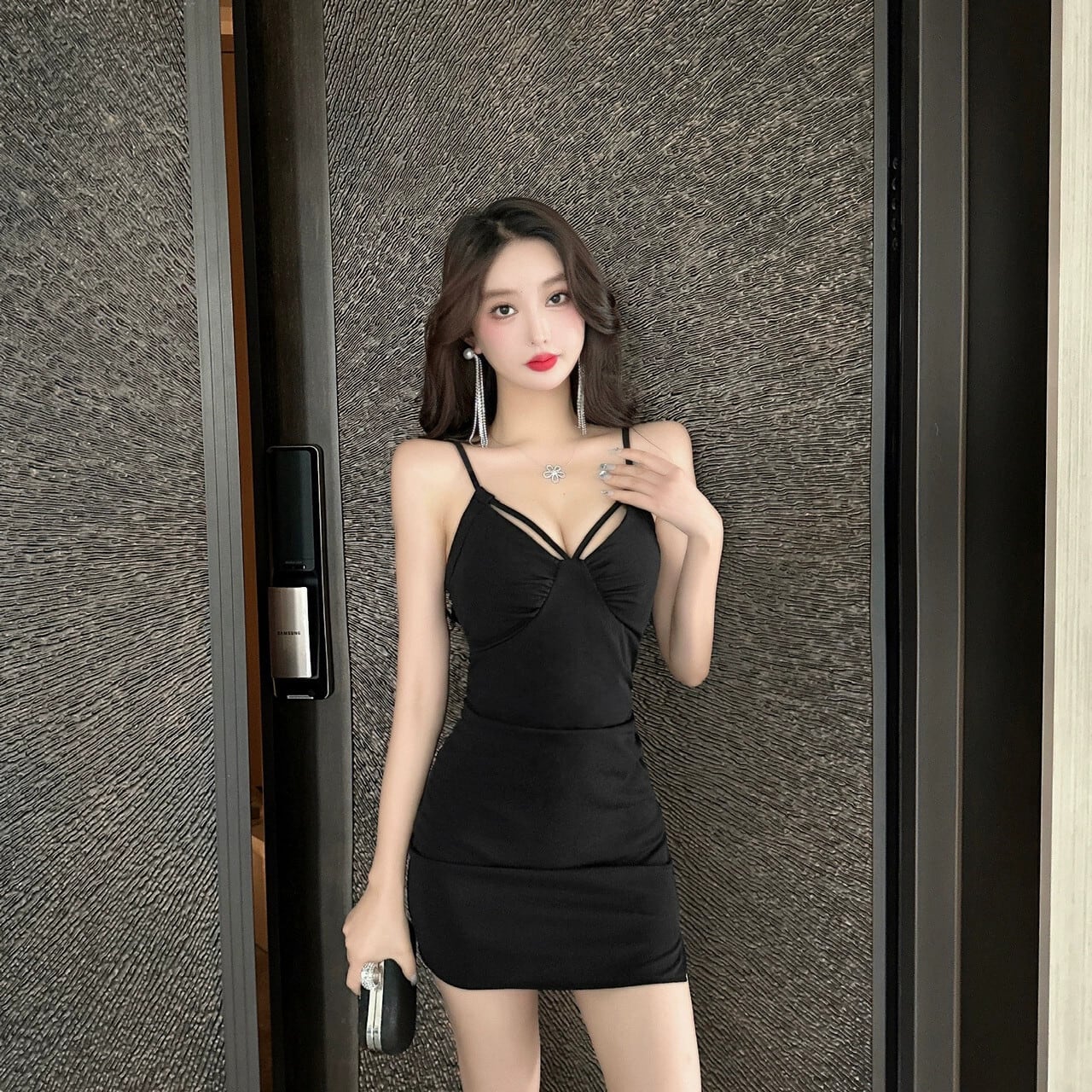 ナイトクラブレディースナイトクラブ作業服、作業服、セクシーなローカットVネックタイトフィットヒップサスペンダードレス yeyij82865385000