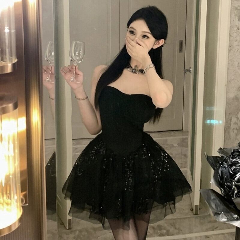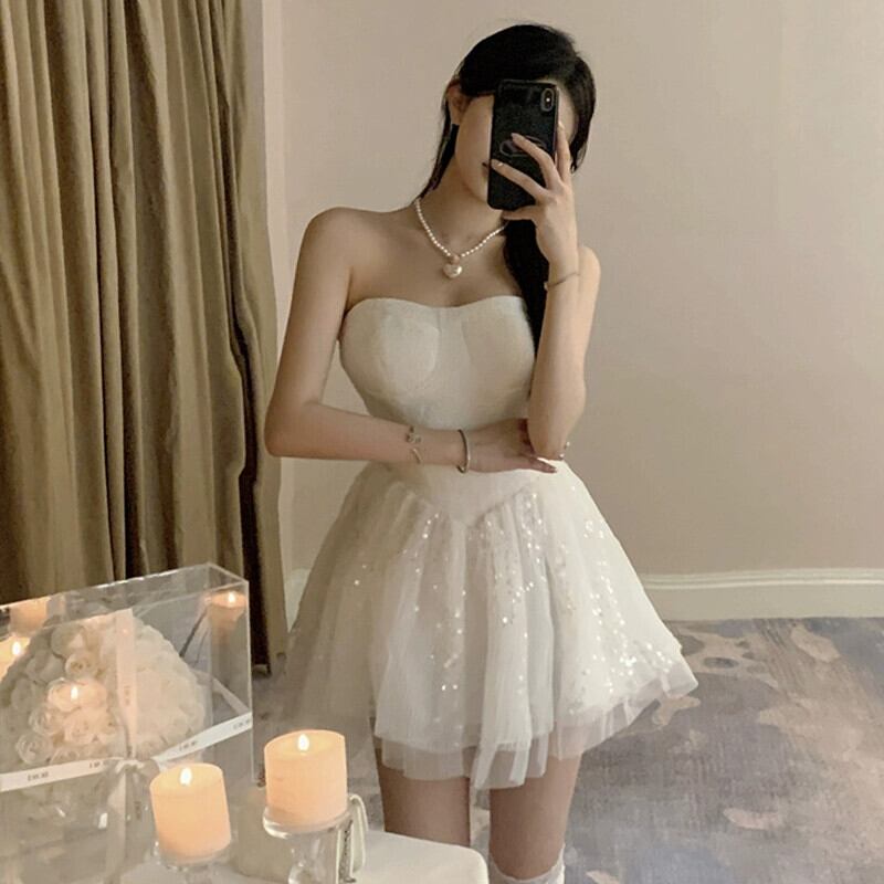 誕生日パーティーハイエンドスカートミニドレススーパーフェアリーフレンチ大人プリンセススカートチュチュスカートセクシーなチューブトップドレス パニエ ペチコート yeyij43156628270