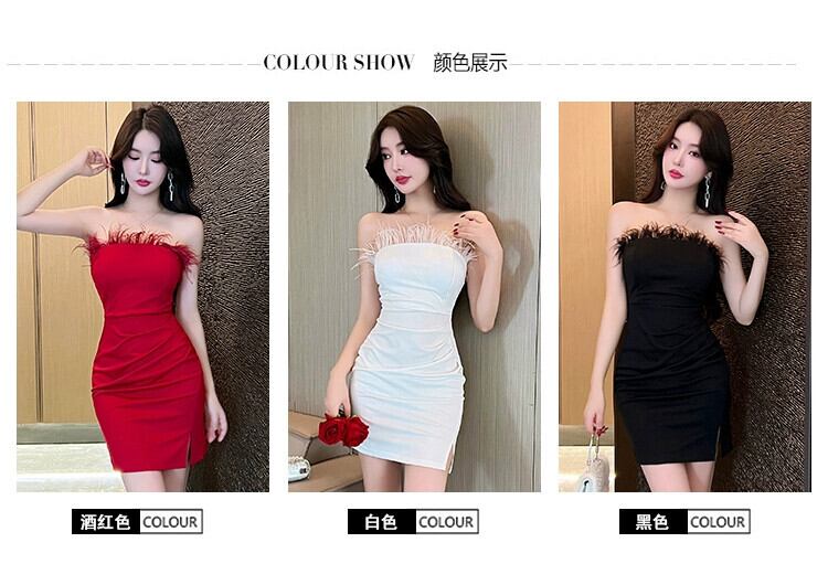 ナイトクラブの女性の作業服ディナーパーティー気質小さなドレスショートセクシーなワンショルダーフェザーチューブトップドレス yeyij588427274