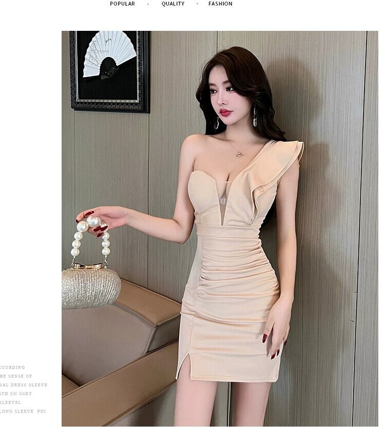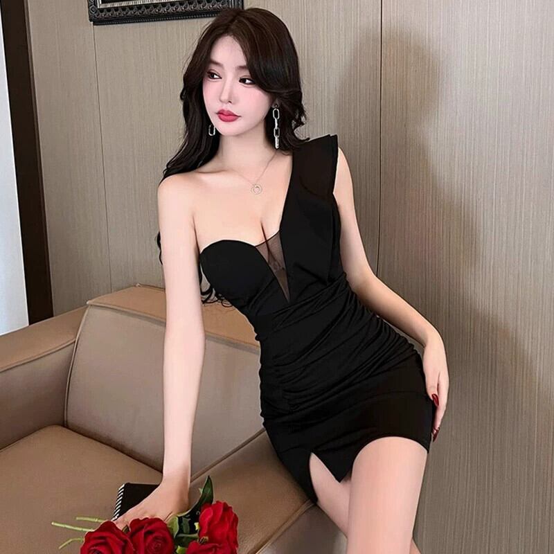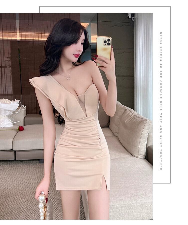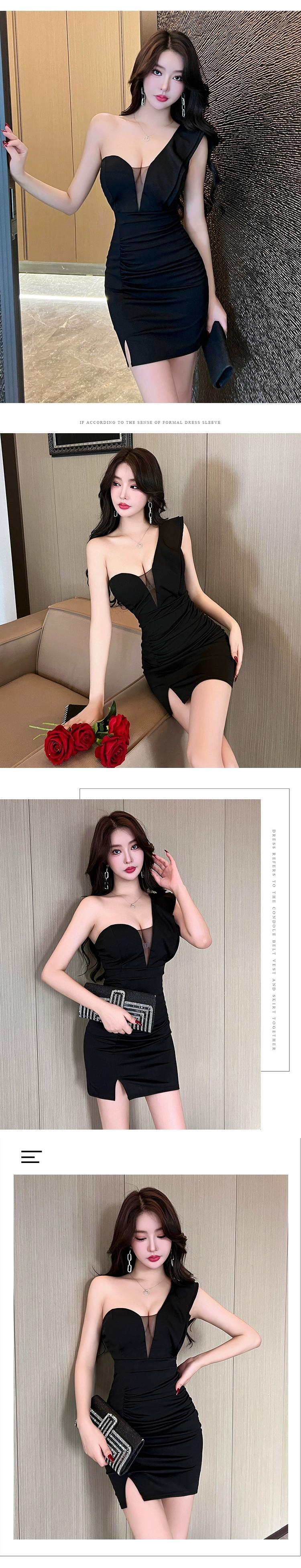 ナイトクラブの女性の作業服ディナーパーティー気質小さなドレスショートセクシーなローカットディープ V ネックチューブトップドレス Vネック yeyij82603593289