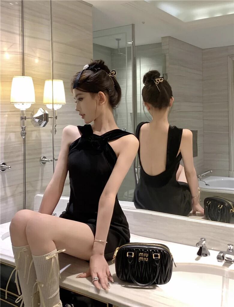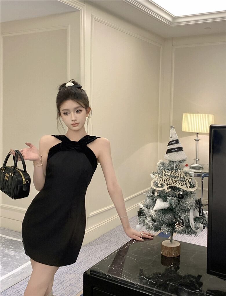 美しいパーティードレスの女性、フレンチヘップバーンスタイル、ハイエンド、純粋な欲望、黒のセクシーなバックレスサスペンダードレス ブラック ピュア yeyij63763243255