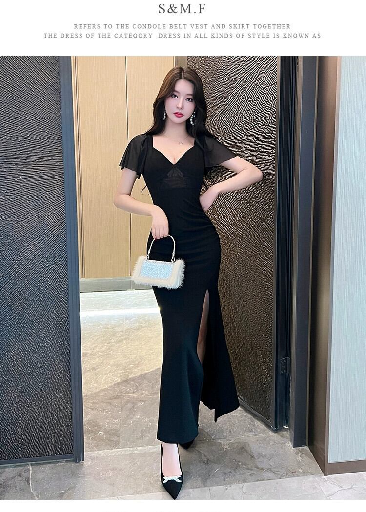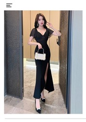 セレブイブニングドレス女性 2024 ナイトクラブ女性のロングスカートナイトクラブセクシーな V ネックメッシュスプライシングドレス Vネック yeyij61931273710