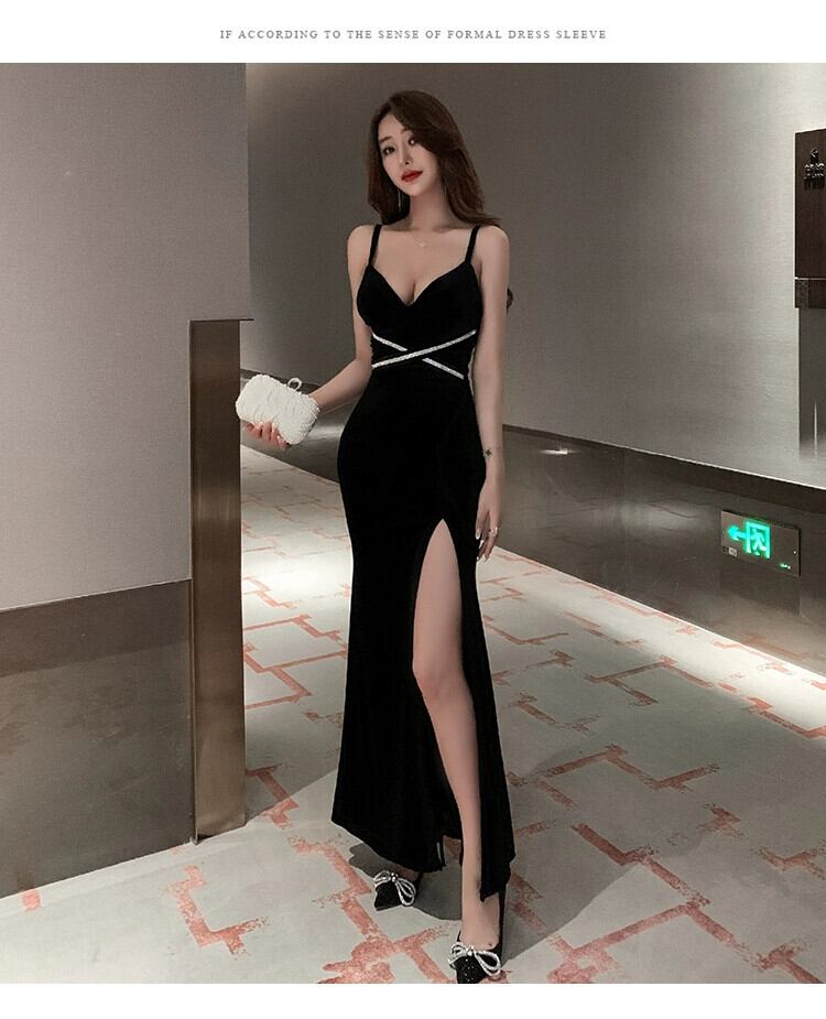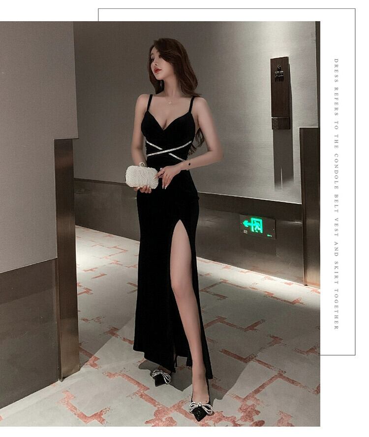 イブニングドレス ロングドレス ナイトクラブ バー レディース セクシー ローカット 深い V ネック ゴールド ベルベット スリム ロング サスペンダー ドレス Vネック yeyij26797184642