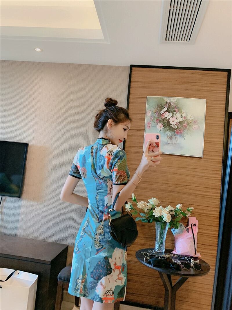 毎日のチャイナドレス改良ドレス 2023 夏の気質レトロボタン半袖共和党スタイルの小さなドレス ショート ハーフスリーブ サマー 夏物 yeyij76798687895