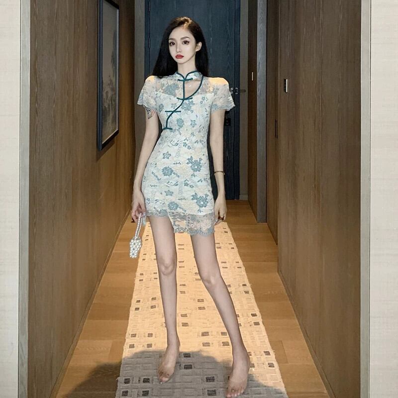 チャイナドレスは毎日着用可能、2023年若いレースの中国風レトロ改良版気質スリムショートドレス yeyij14707045370
