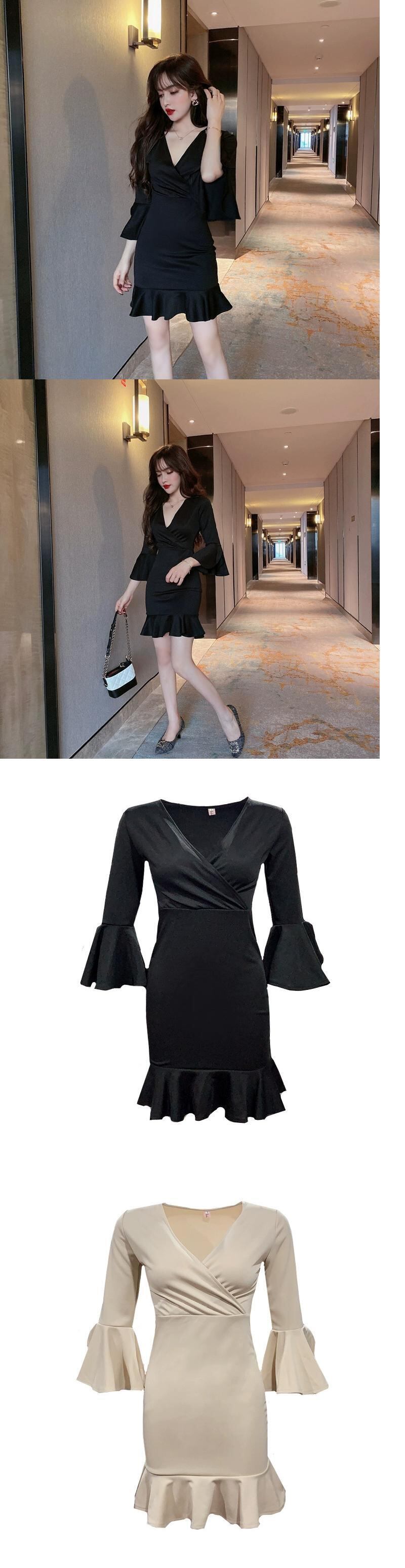 秋服2021新モデル社交家、優雅な気質、女神スタイル、軽くて大人なスタイル、セクシーなVネック、蓮の葉の袖、フィッシュテールドレス オータム 秋物 yeyij40251133378