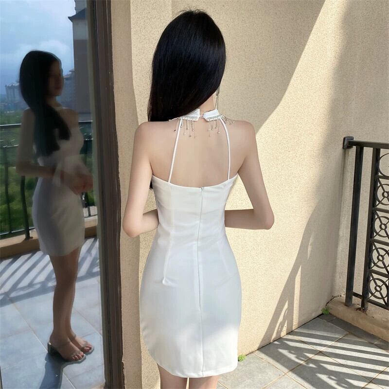 ショートドレス ディナー パーティー、エレガントなドレス、輝くラインストーンのセクシーなヒップハグ ホルター ネック ドレス yeyij89910770796