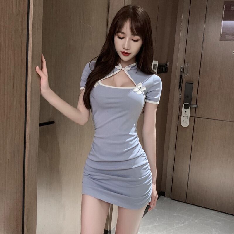セクシーなチャイナドレス夏アンカー服若い改良版中国風ぴったりフィットショートヒップカバードレス サマー 夏物 yeyij63193113950