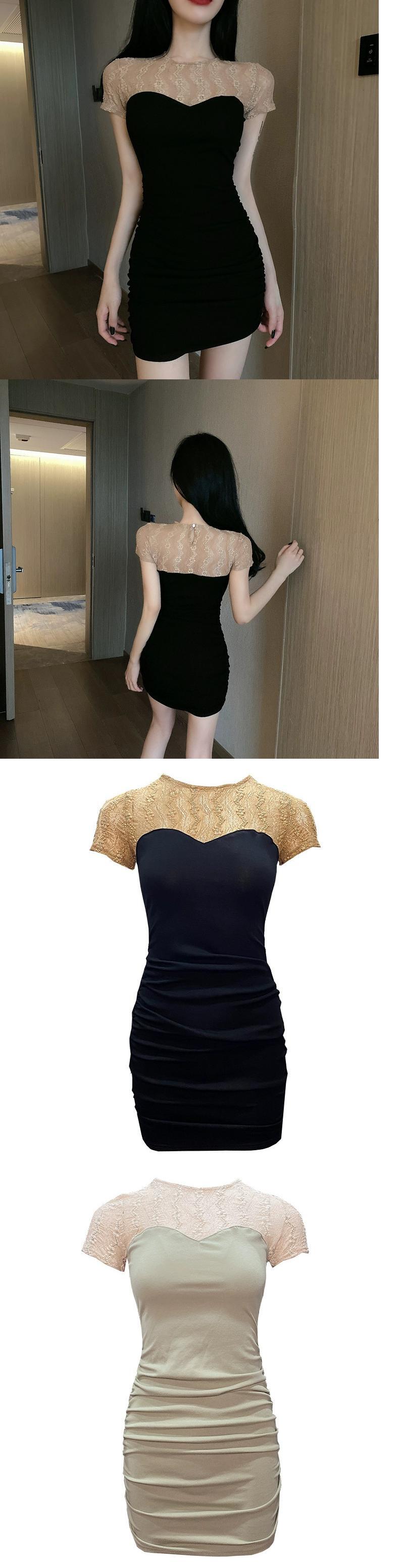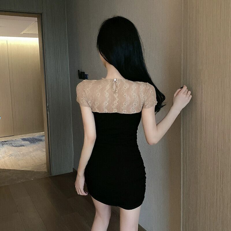 インターネットセレブのアンカースカート、社交界の人気者、上品な気質、セクシーなレースのスプライシング、スリミングプリーツショートヒップハグドレス yeyij98727850911