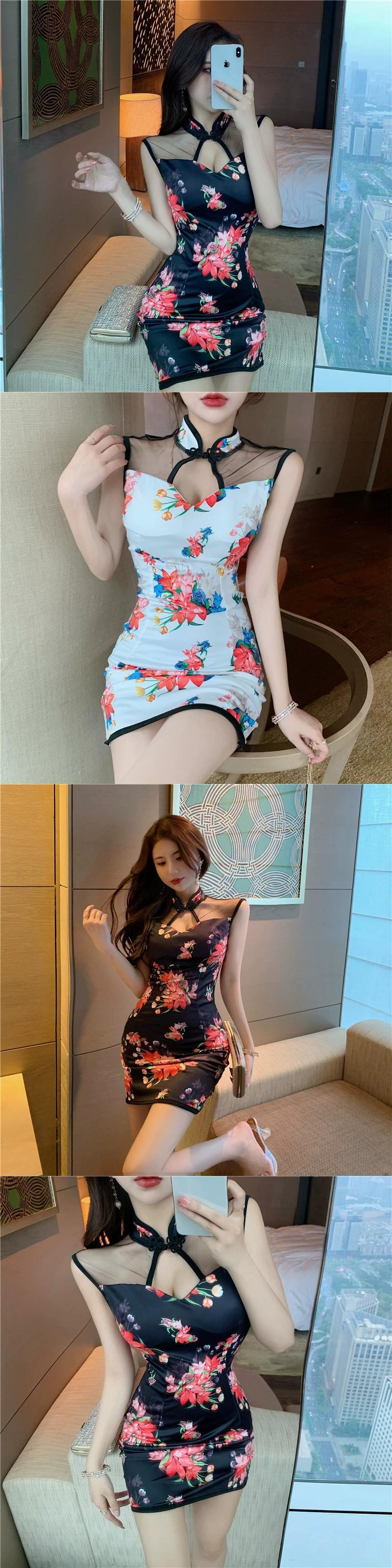 アンカー服若いナイトクラブセクシーな中空メッシュスプライシング女の子ショートチャイナドレス改善されたドレス yeyij84475750339