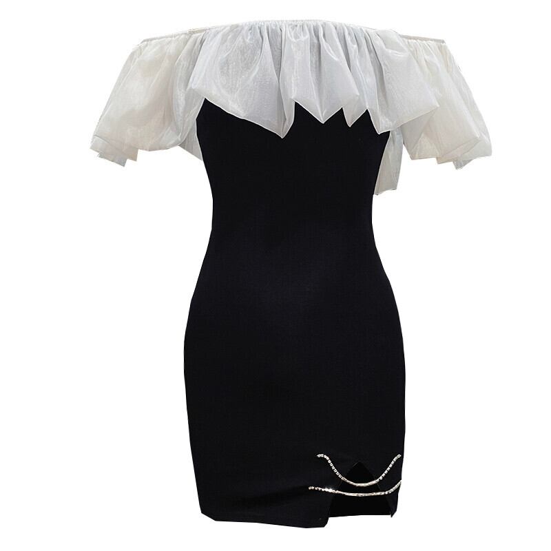 生放送服女性アンカー服ナイトクラブフレンチドレスショートフリルセクシーなワンショルダードレス yeyij82669540588