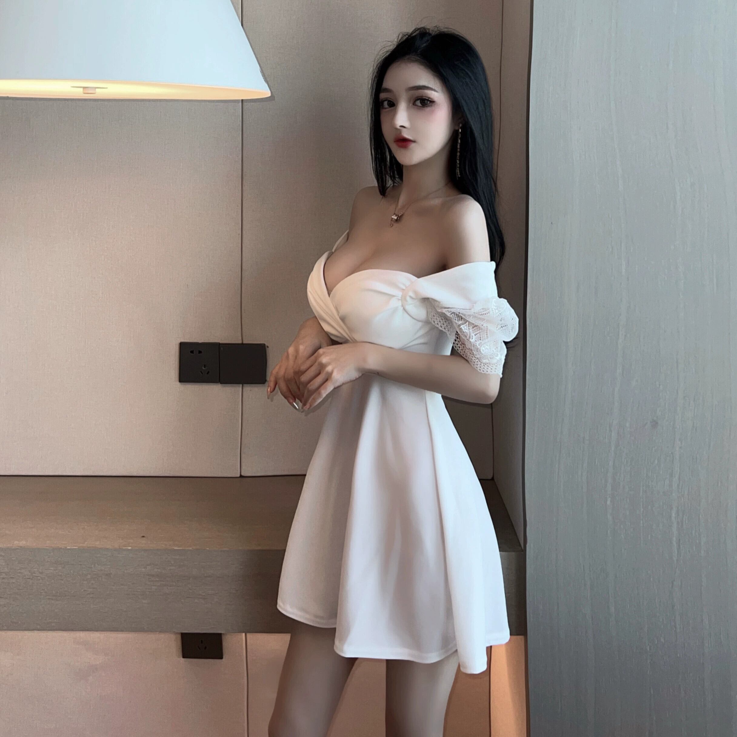 ナイトクラブの女性のセクシーな作業服ローカットドレス深い V ネック気質フレンチウエスト痩身ふくらはぎドレス Vネック yeyij33020066371