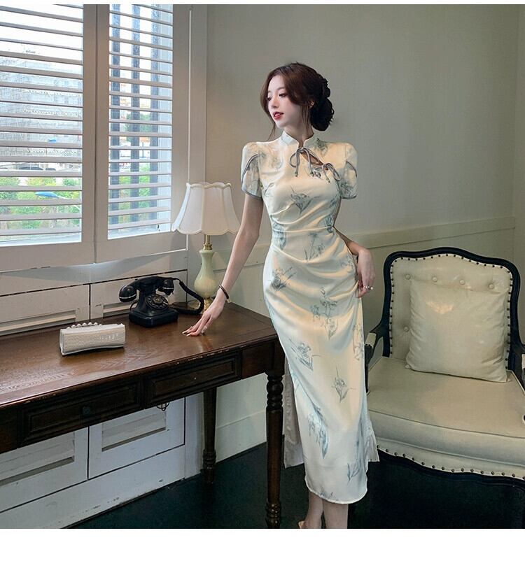 中国風の改良されたチャイナドレス 2022 新しい若いスタイルのハイエンドレースアップスリムミッドレングスドレス yeyij19341269057