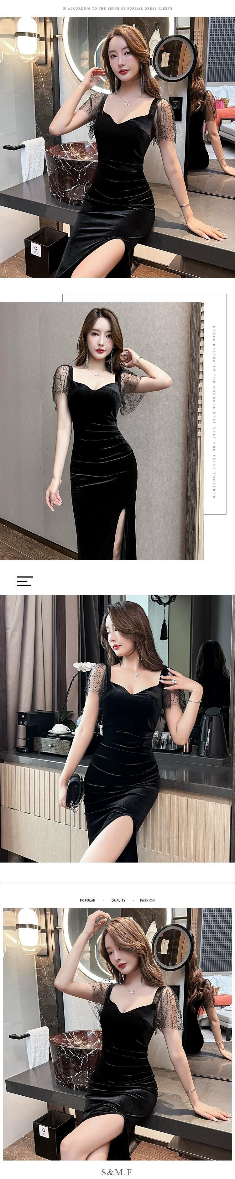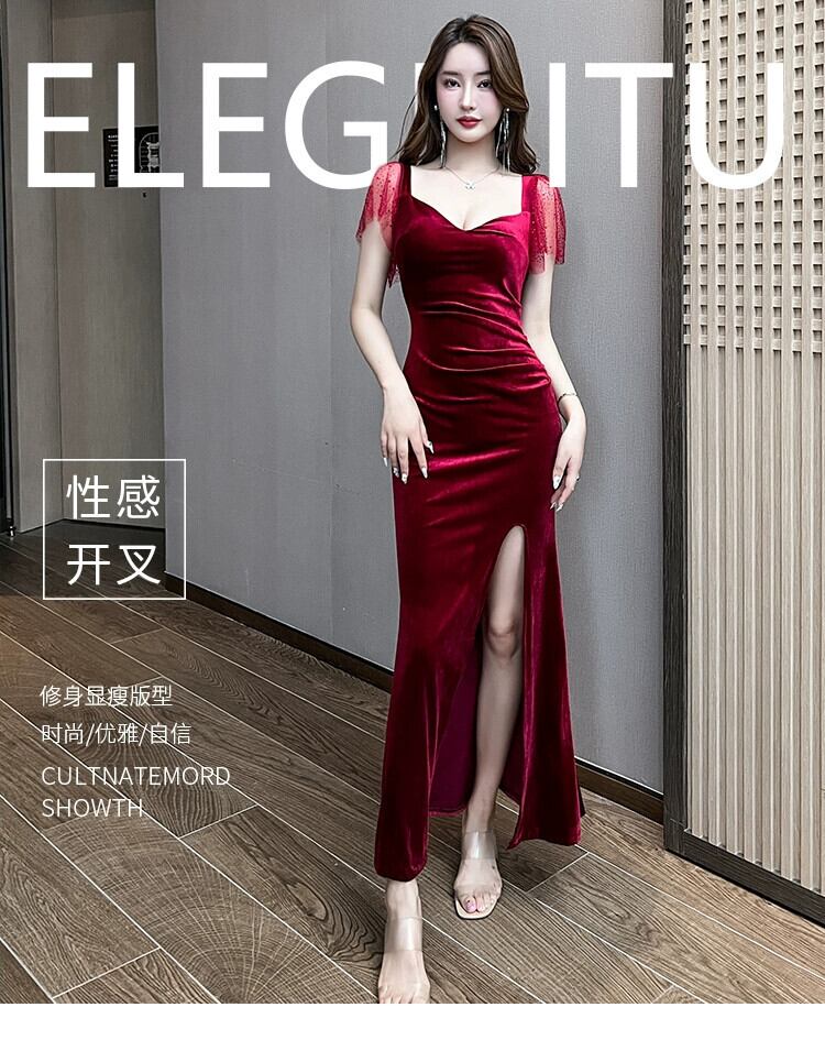 イブニングドレス、ロングドレス、ナイトクラブの女性のナイトクラブの作業服、宴会の気質、ハイエンドのセクシーなゴールドベルベットのロングドレス yeyij89577147760