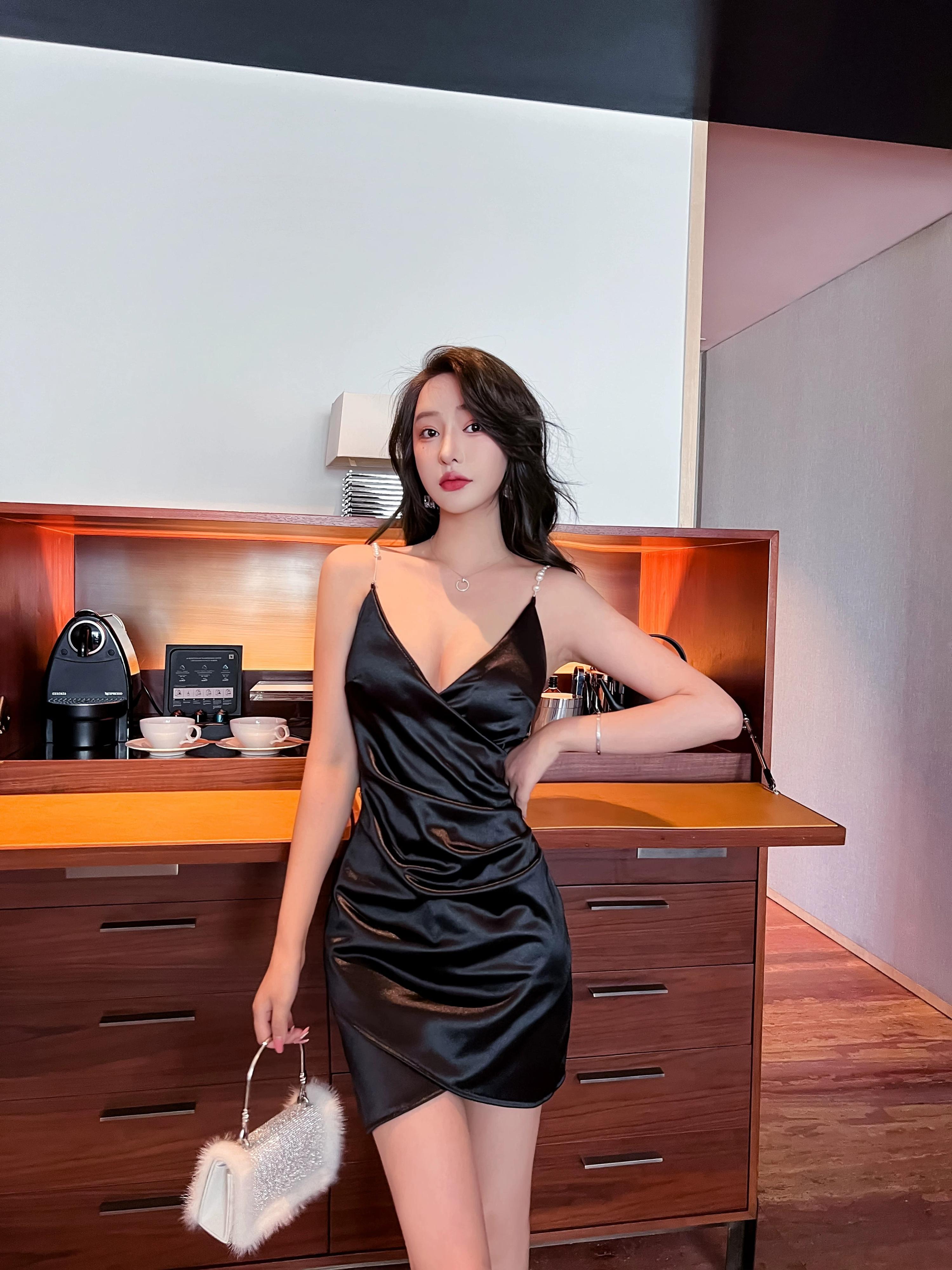 ナイトクラブの女性の作業服ナイトクラブのハイエンドの気質スリムセクシーなローカットディープ V ネックサスペンダードレス Vネック yeyij76899706731