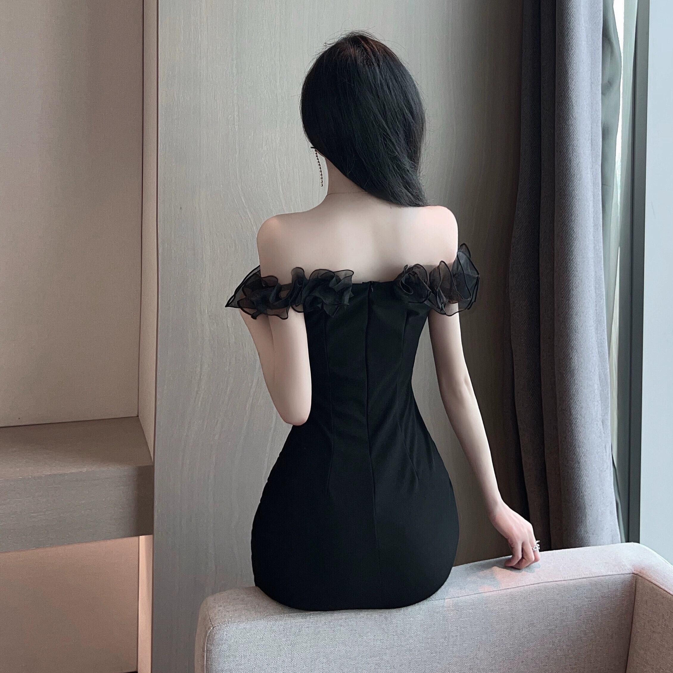 フランス生放送服女性アンカー服小さなドレスナイトクラブショップ気質スーパーセクシーなセクシーなワンショルダードレス yeyij38008407652