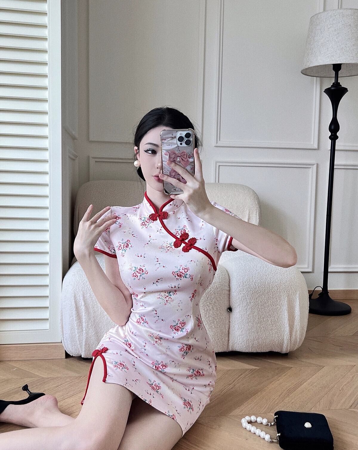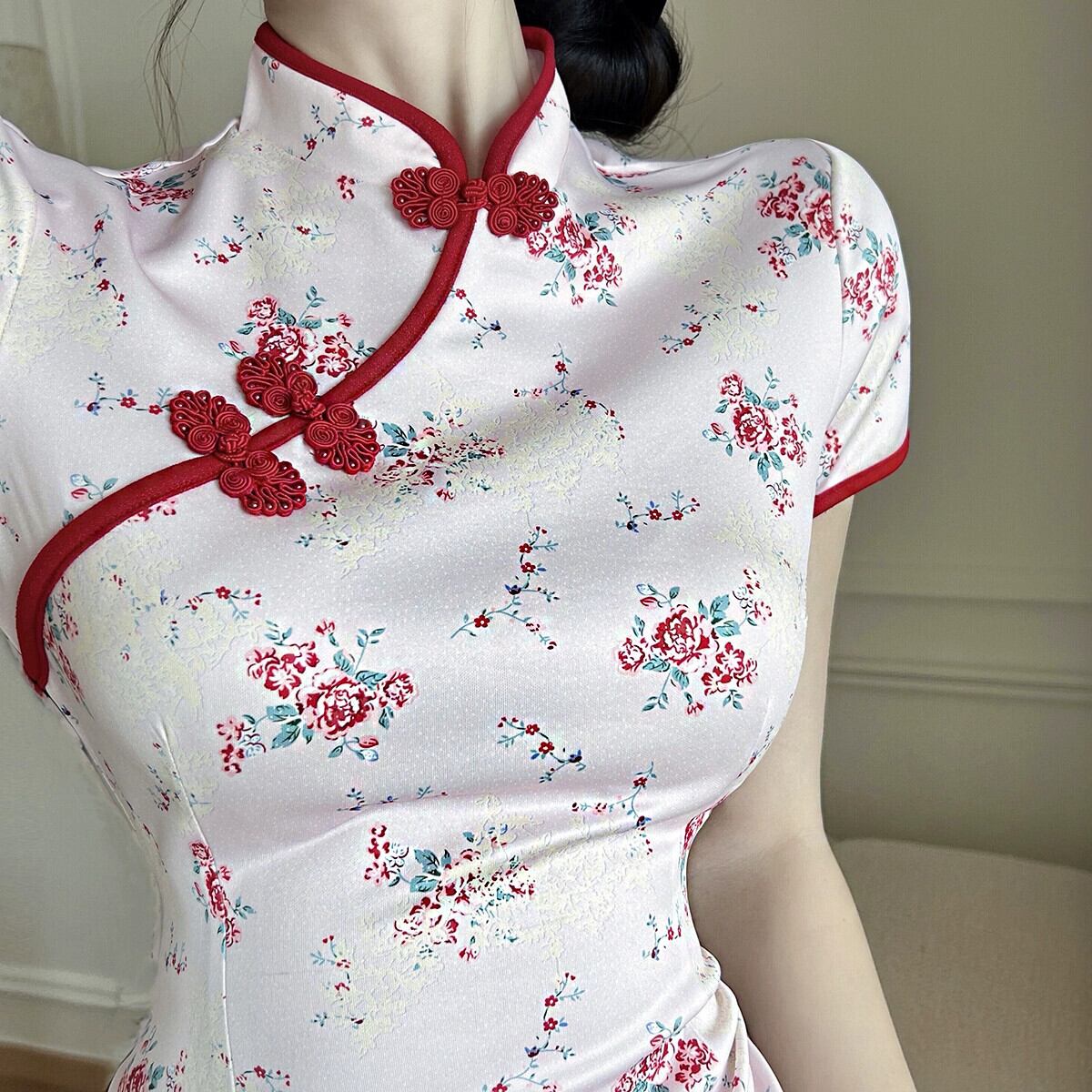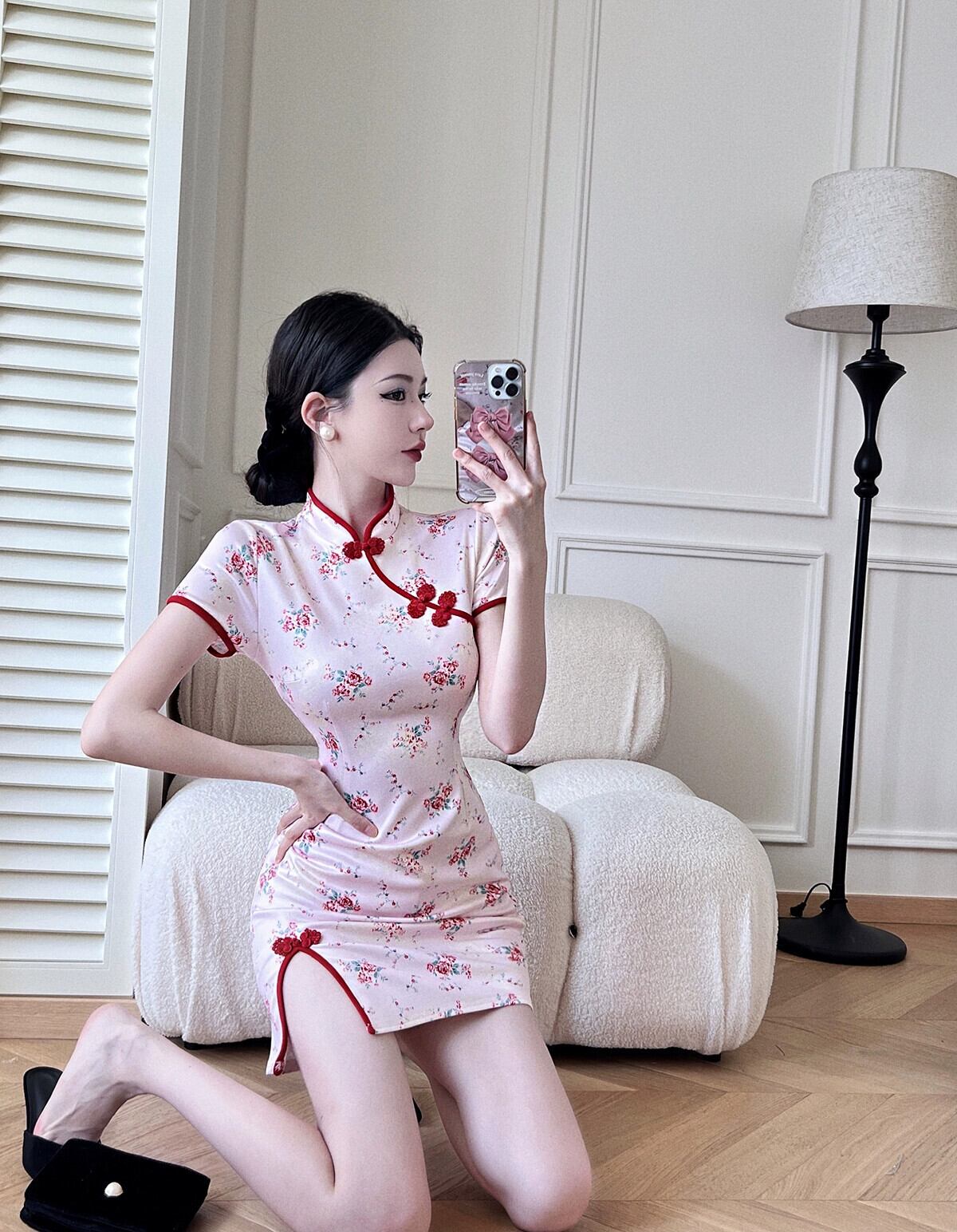 生放送服女性アンカー pogenic ハイエンド純粋な欲望スタイル若いセクシーな改良された花柄チャイナ ドレス ピュア yeyij41941629259